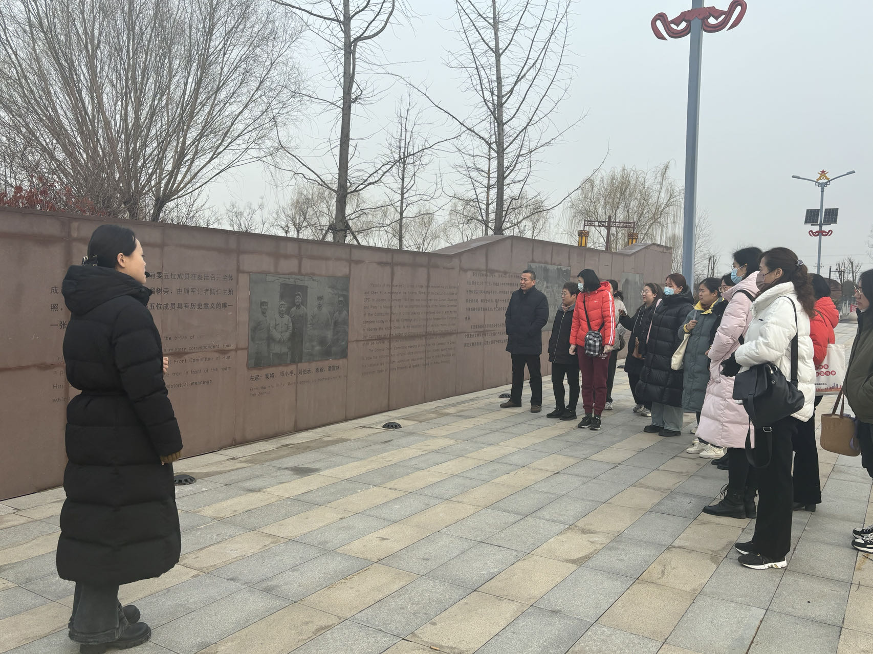 在蔡洼淮海战役红色教育基地,全体女职工怀着无比崇敬的心情,跟着讲解员的讲解顺着展区依次参观,在一幅幅陈旧的照片、一件件珍贵的文物前驻足观看,更加直观地了解了老一辈共产党人和革命先辈的艰苦奋斗历程,重温了淮海战役波澜壮阔的历史。