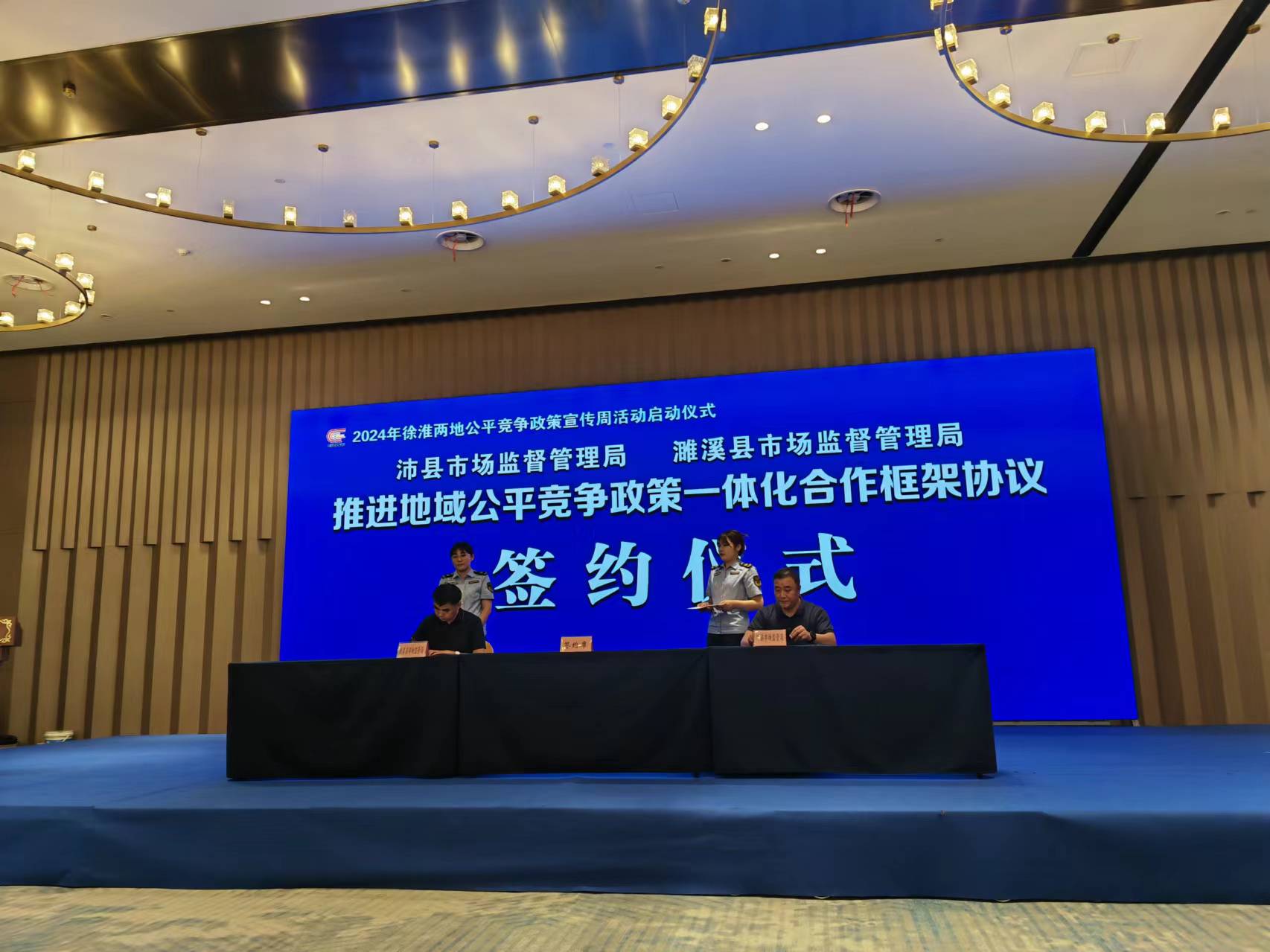 沛县市场监管局与濉溪县市场监管局就“推进地域公平竞争政策一体化合作框架协议”进行签约。