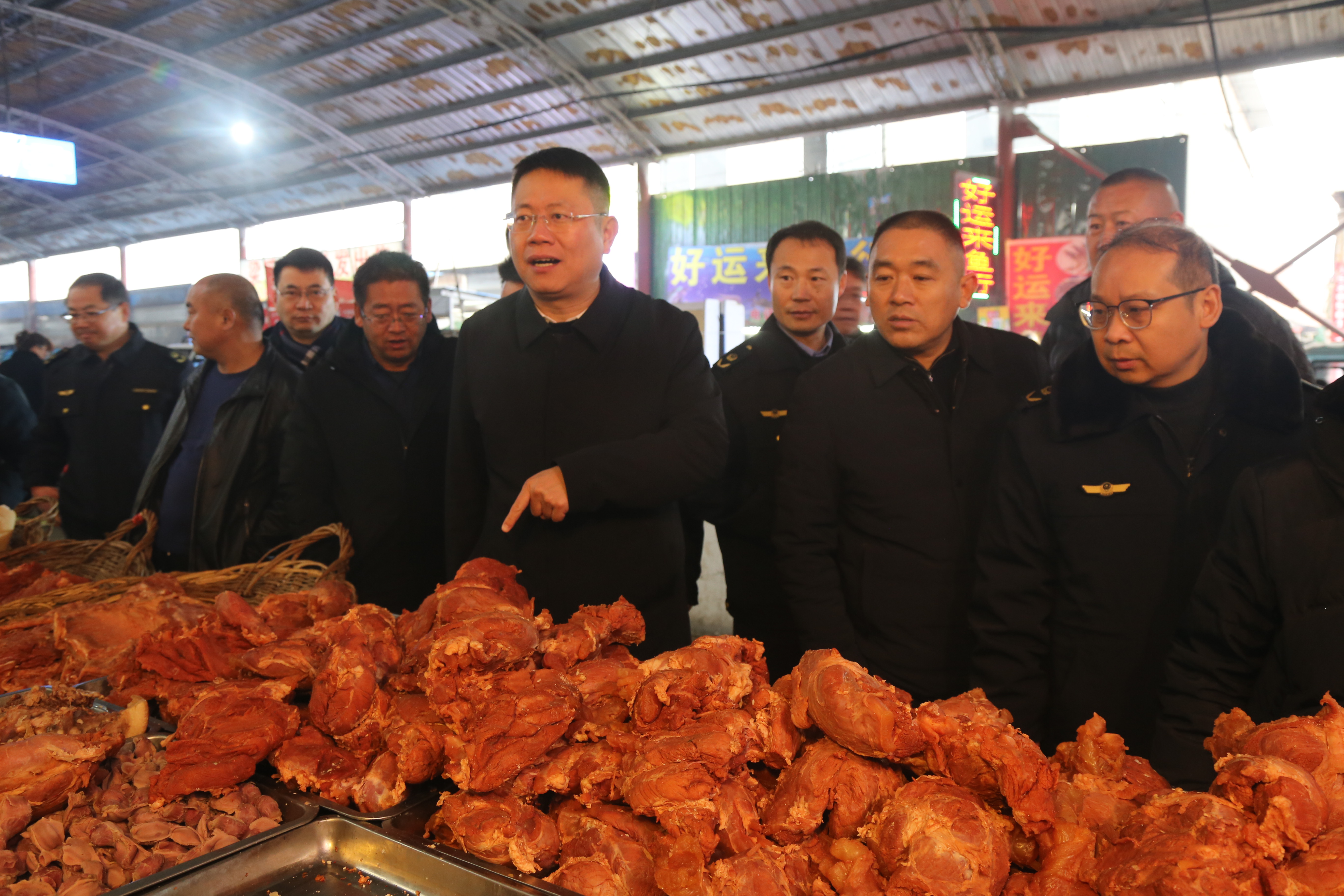 鲍锐一行先后来到溪河农贸市场、佑森药房、金利良缘大酒店、家家悦真棒超市等企业,现场详细了解了食品药品安全、“年夜饭”预订和肉类、蔬菜、粮油稳价保质等各项工作情况。