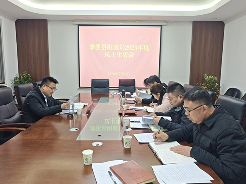 2月26日下午,濉溪县财政局召开2025年度民主生活会,会议由党组书记赵紫岩同志主持,局党组领导班子全体成员参加会议。县财政局党组紧扣会议主题,扎实做好会前各项准备工作,会前以谈心谈话、意见征询等形式,广泛征求意见建议,对照“五个带头”查摆问题,深刻剖析反面典型案例,撰写对照检查材料,为开好民主生活会奠定坚实基础。