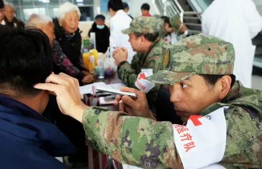 10月29日,中国人民解放军联勤保障部队902医院组织心肾内科、胸外科、五官科等8个科室的16名医务人员,走进双堆集镇卫生院开展义诊活动,将优质医疗服务送到群众家门口。