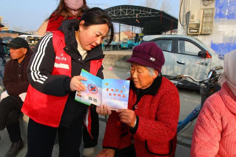 文艺表演间隙,来自综治、司法等部门的志愿者们向群众发放反邪教、反电诈、扫黑除恶等宣传手册,为群众讲解相关法律法规和防范知识。针对老年人重点讲解邪教常用的传播方式,要注重防范,做到不听、不信、不传,遇到可疑情况及时报警。