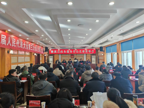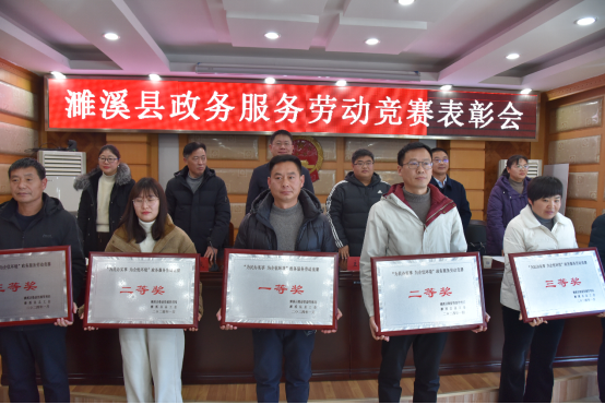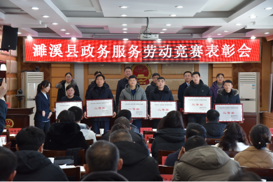 会上,为临涣镇、五沟镇、百善镇、双堆镇、南坪镇、铁佛镇、税务局、公安局、市场局、人社局、住建局、文旅体局代表颁奖,为10家市级大数据企业代表授牌。先进集体县税务局代表、临涣镇代表上台交流发言,县税务局探索实施“一杯茶”调解法,成立“洪涛劳模创新工作室”,进一步优化营商环境。临涣镇紧紧围绕深化行政审批制度改革和“一网通办”等重点工作任务,按照“五个一”建设标准,落实“一站式”服务要求,设置服务窗口14个,进驻窗口工作人员16名。
