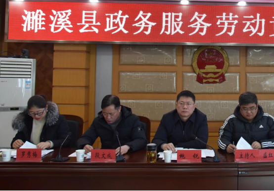 1月15日,县数据资源管理局联合县总工会举行“为民办实事、为企优环境”政务服务劳动竞赛表彰会,县政府副县长鲍锐、县总工会党组书记、副主席段文成、党组成员、副主席牛晓玲、县数据局党组书记、局长刘溪、党组成员、副局长罗秀梅出席,县政府办党组成员、副主任盛红雷主持会议,各镇、园区政务服务分管领导、县直政务服务相关单位分管领导、市级大数据企业负责人参加。