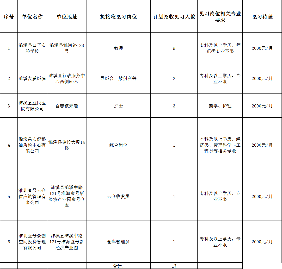 2025年濉溪县第四批就业见习岗位信息汇总表