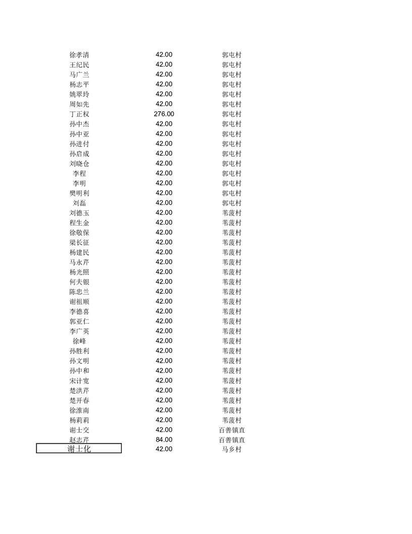 百善镇2025年11月分散供养特困护理补贴农村五保清册表