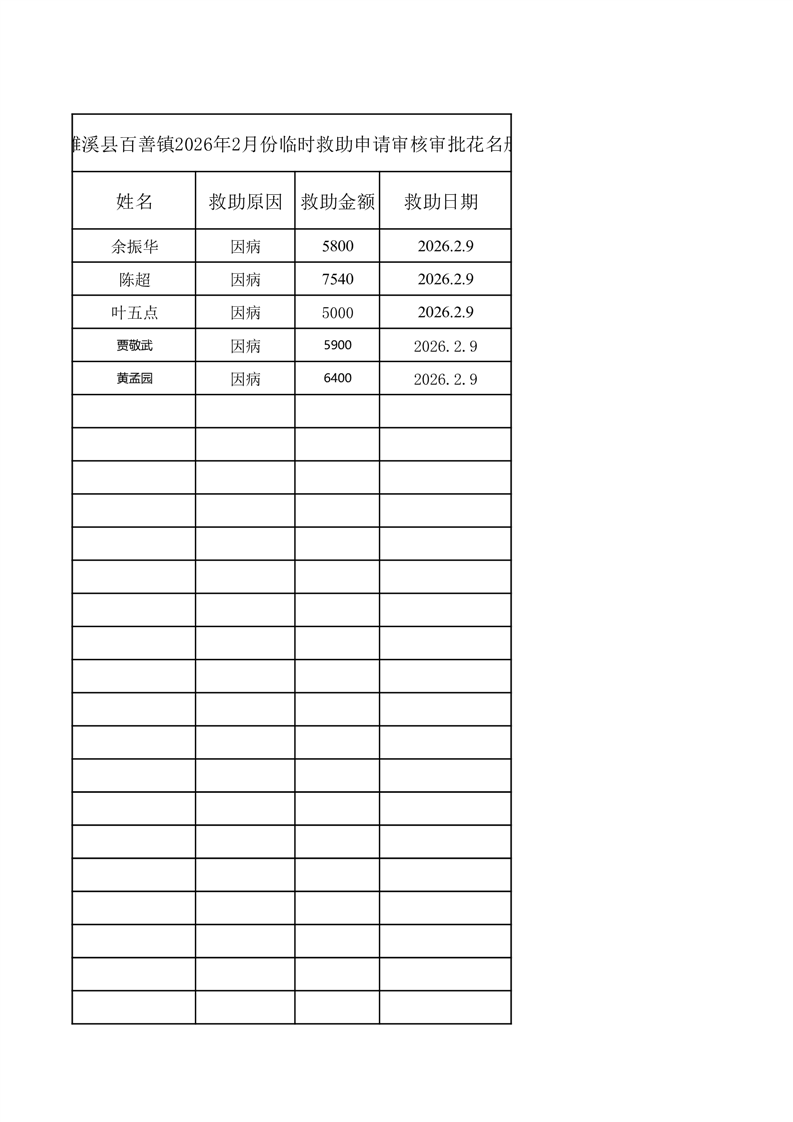 濉溪县百善镇2026年2月份临时救助申请审核审批花名册