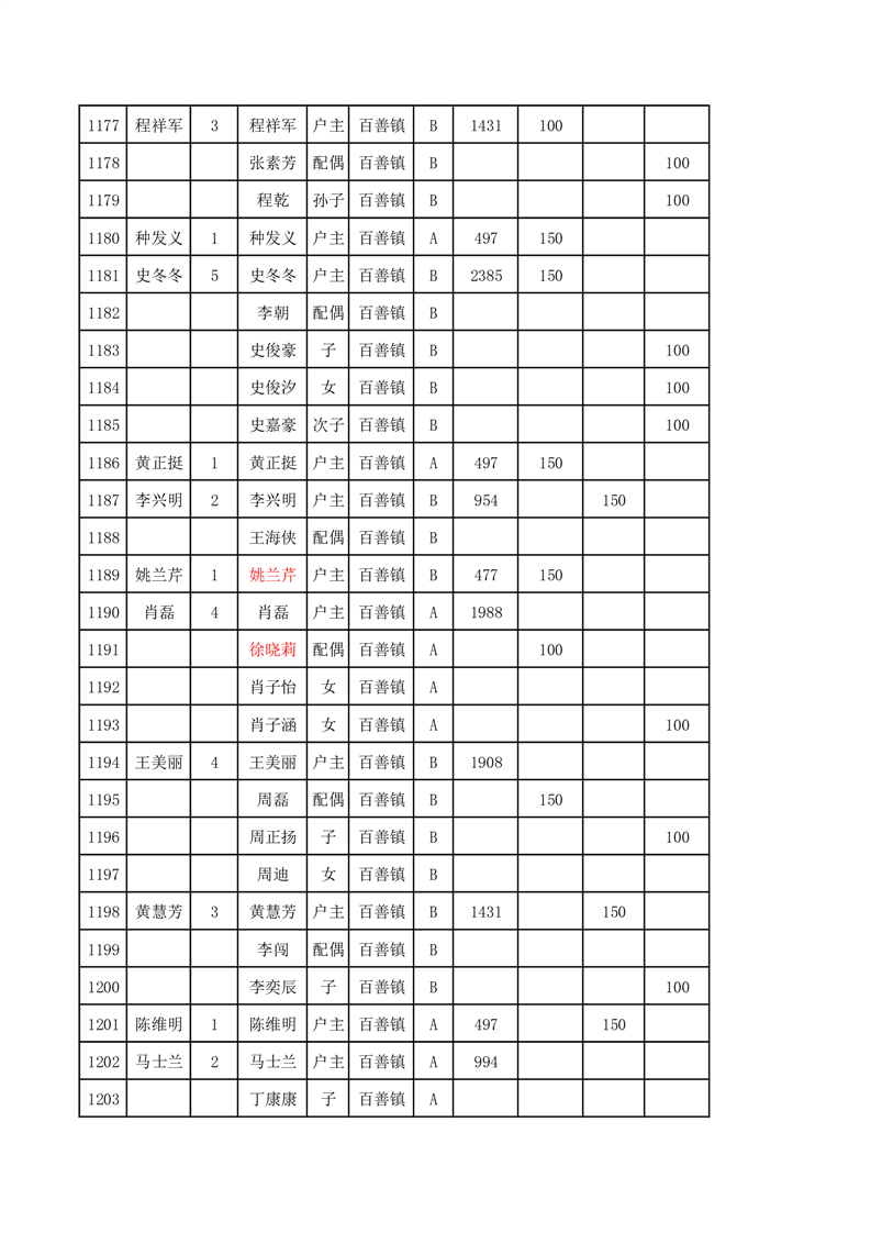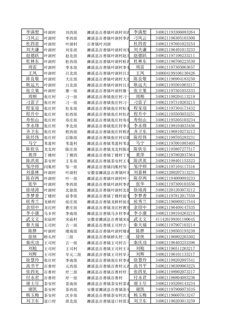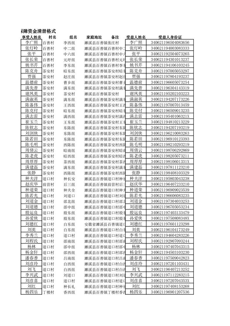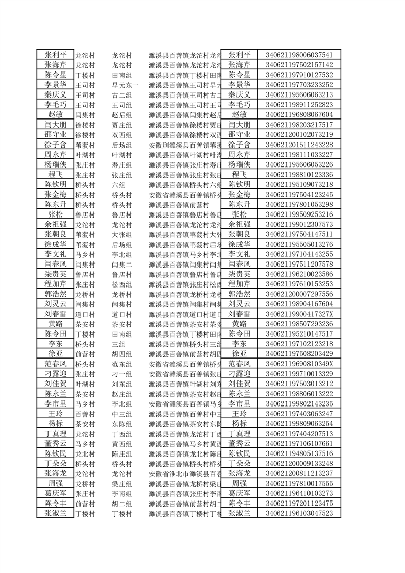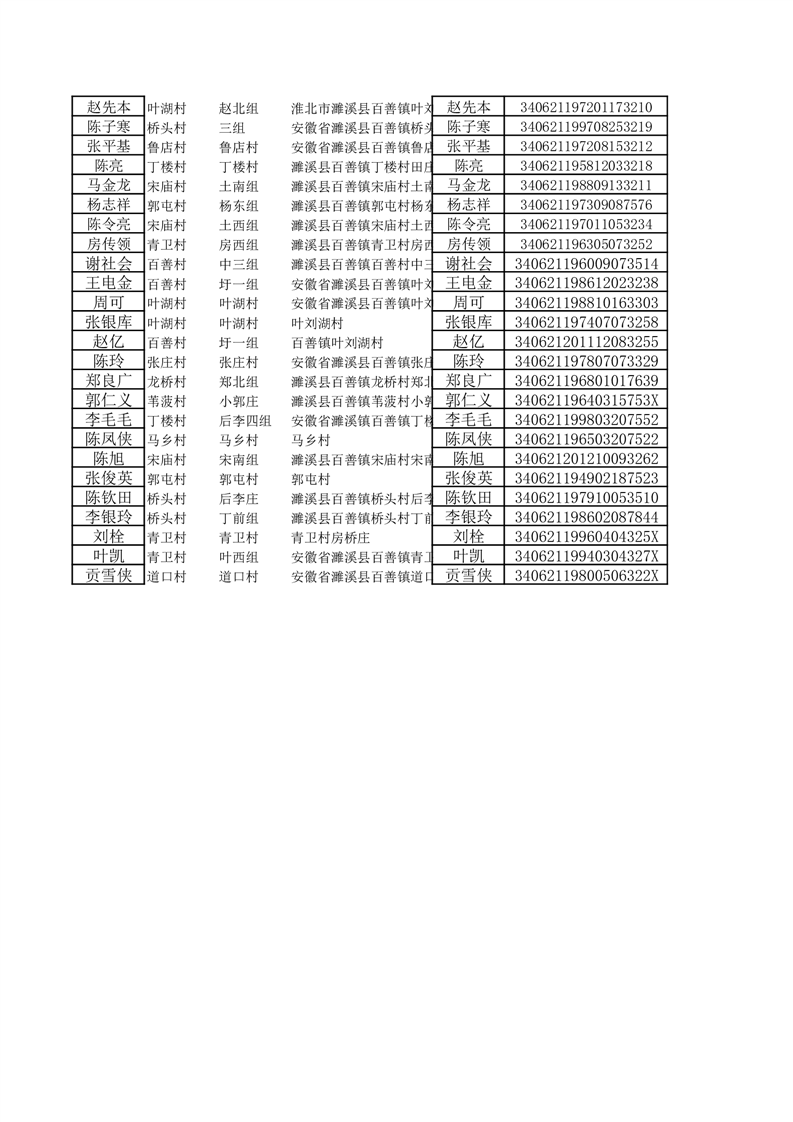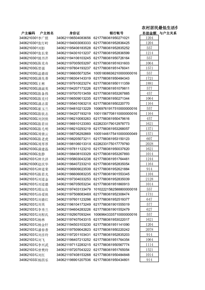 濉溪县百善镇2026年1月农村居民最低生活保障人员花名册