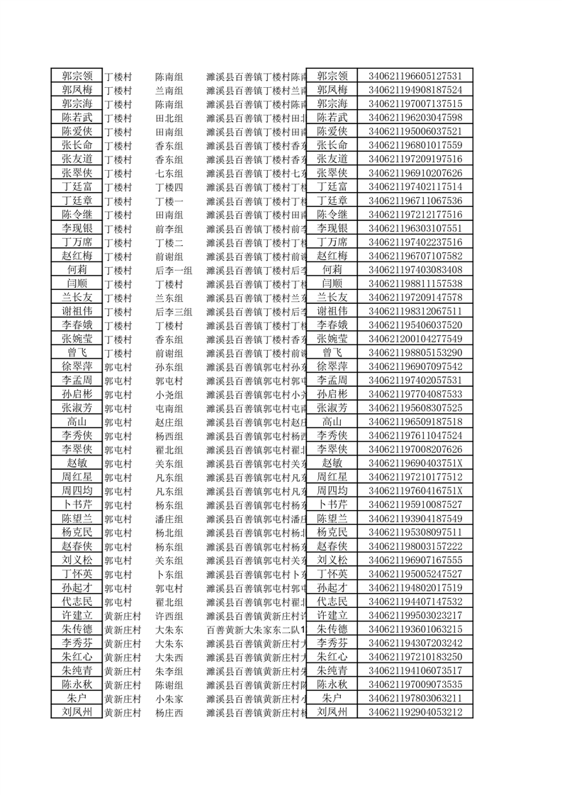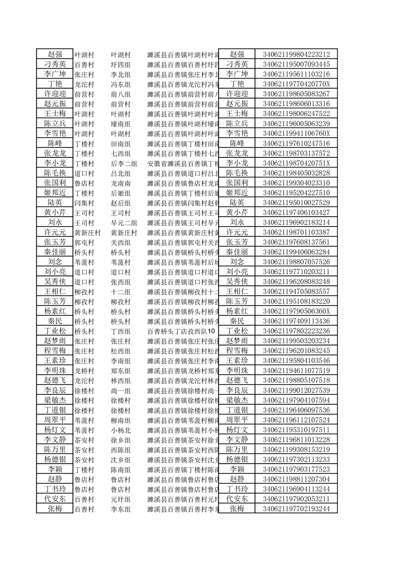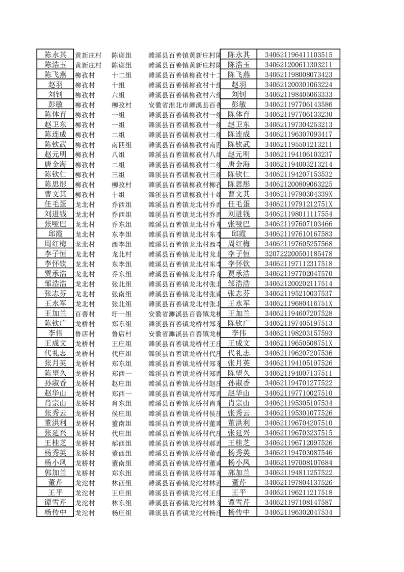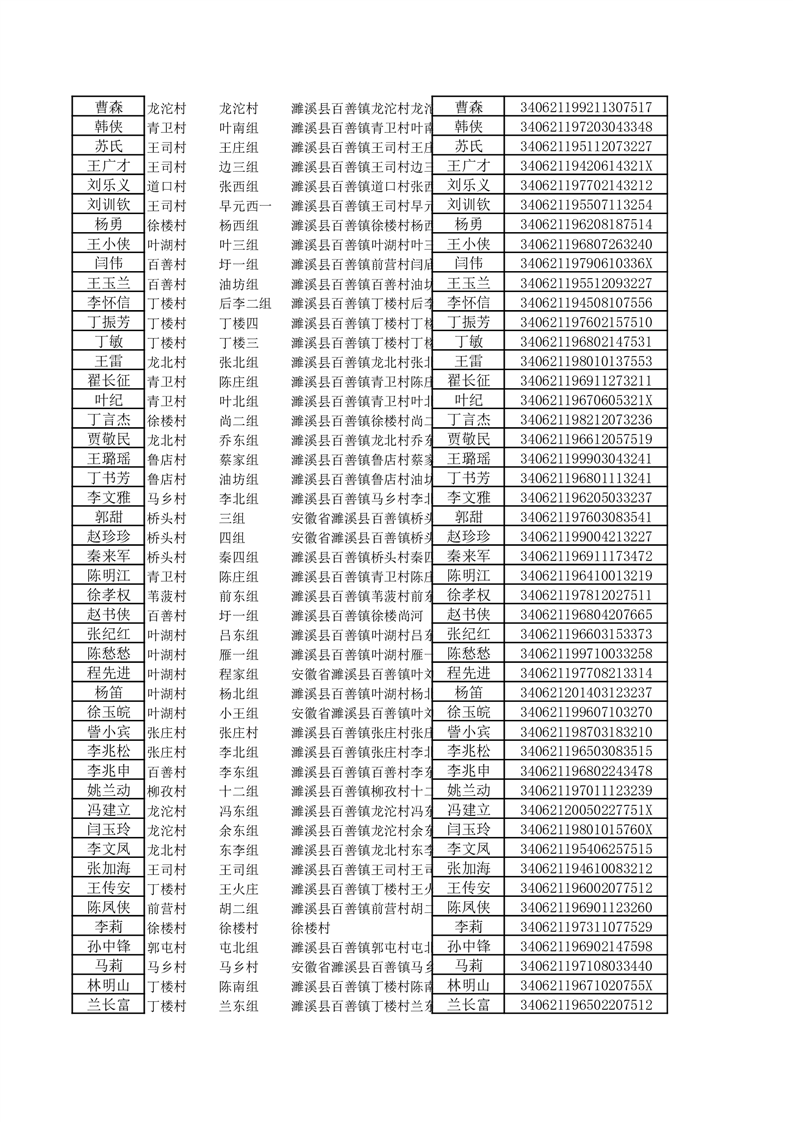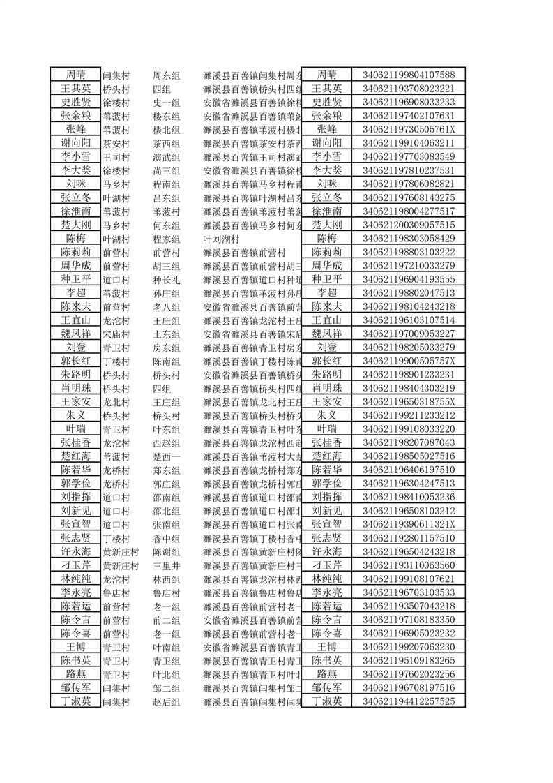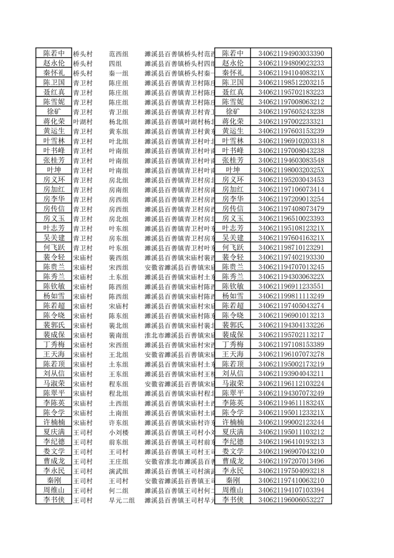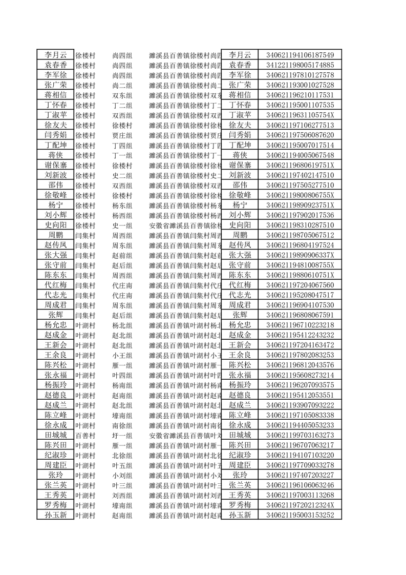 濉溪县百善镇2026年1月农村居民最低生活保障人员花名册
