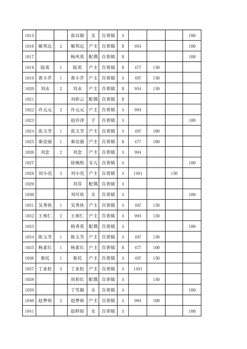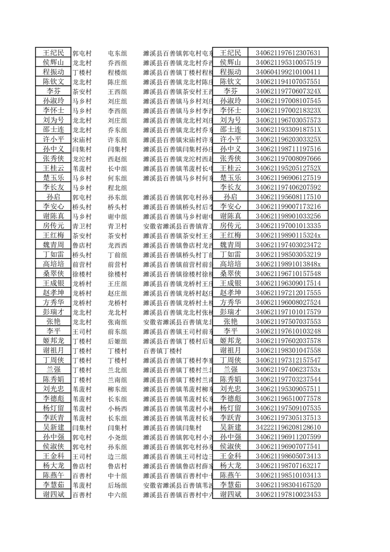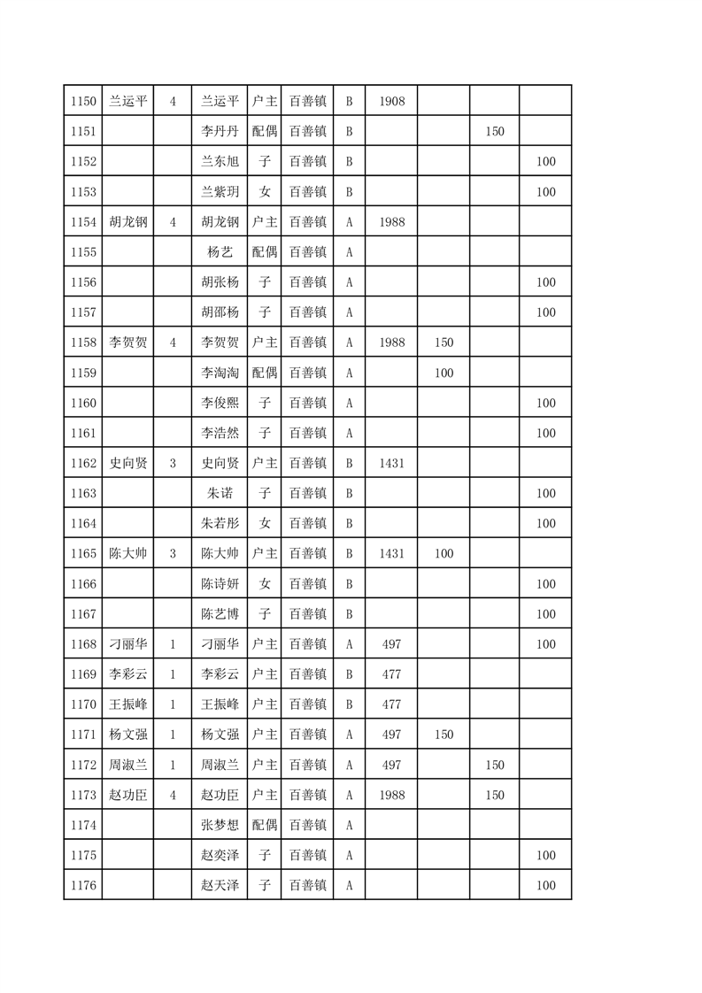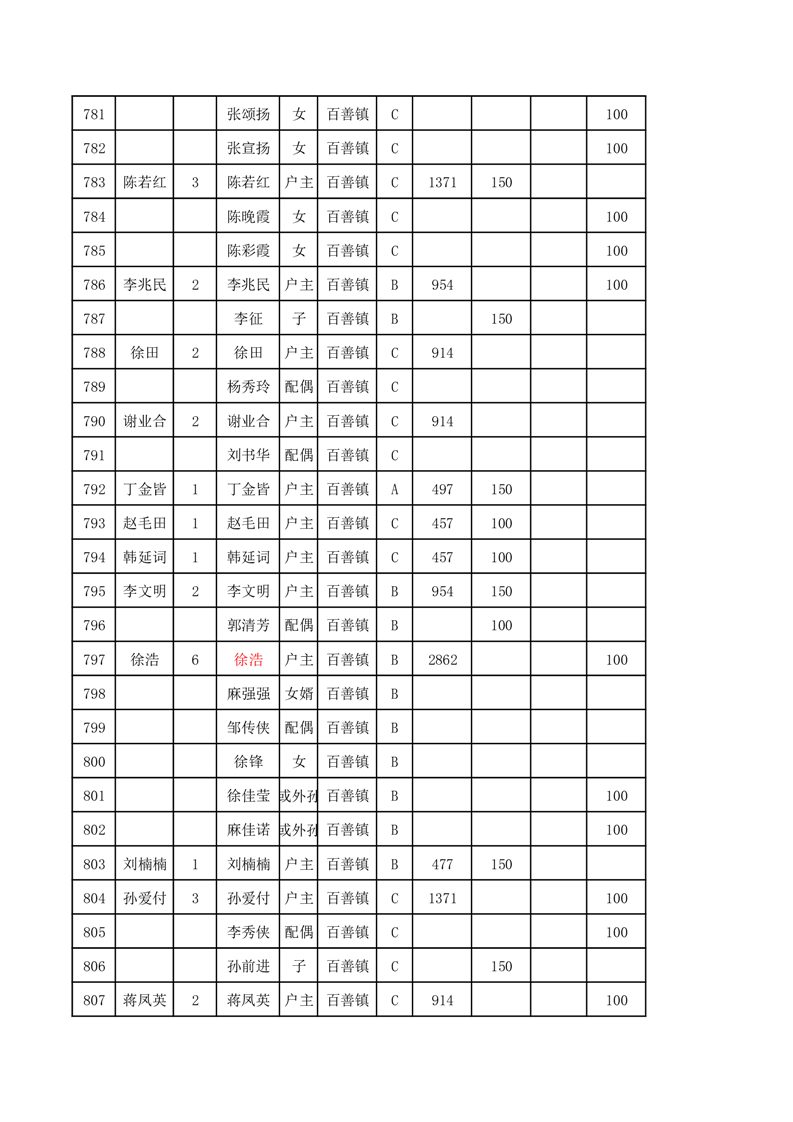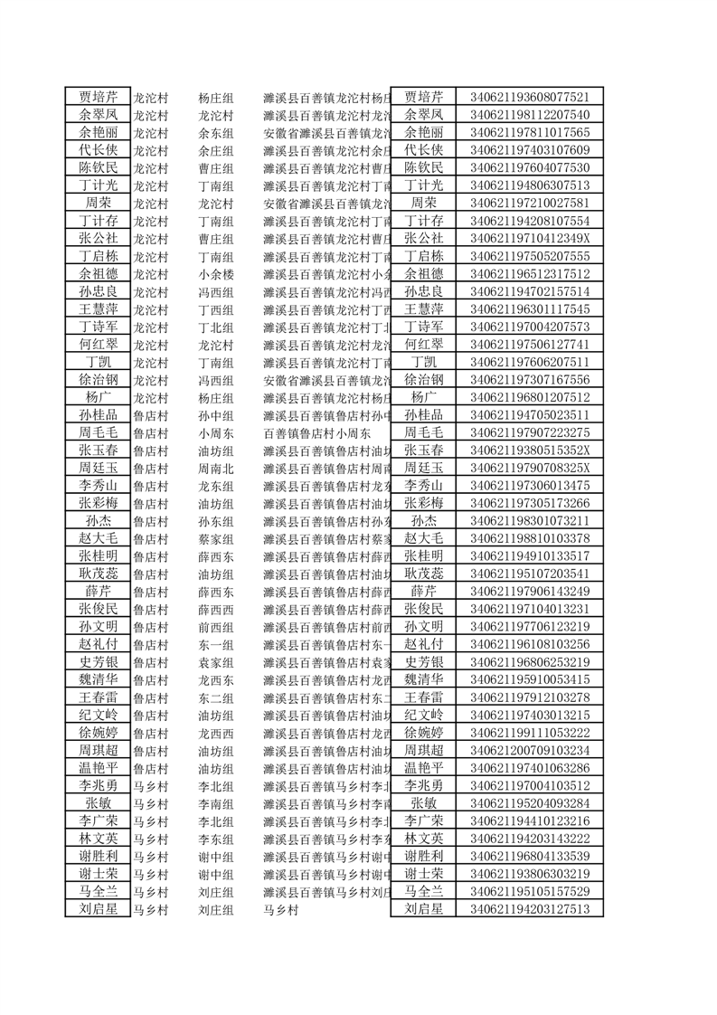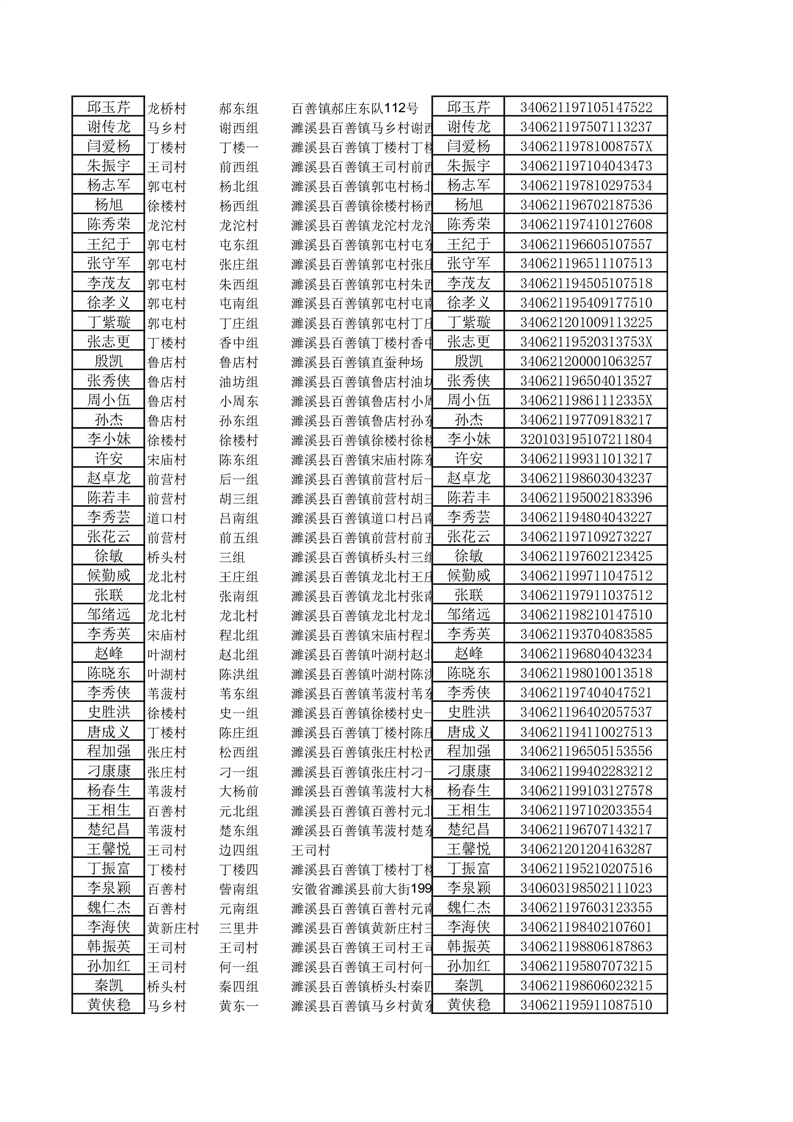 濉溪县百善镇2026年1月农村居民最低生活保障人员花名册