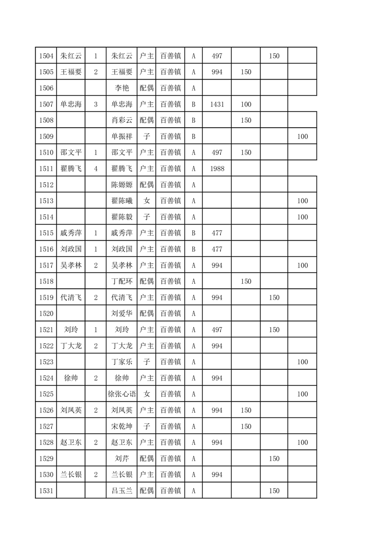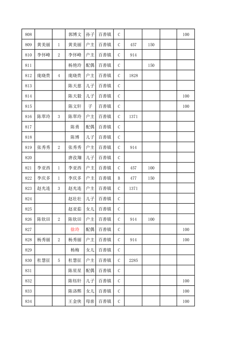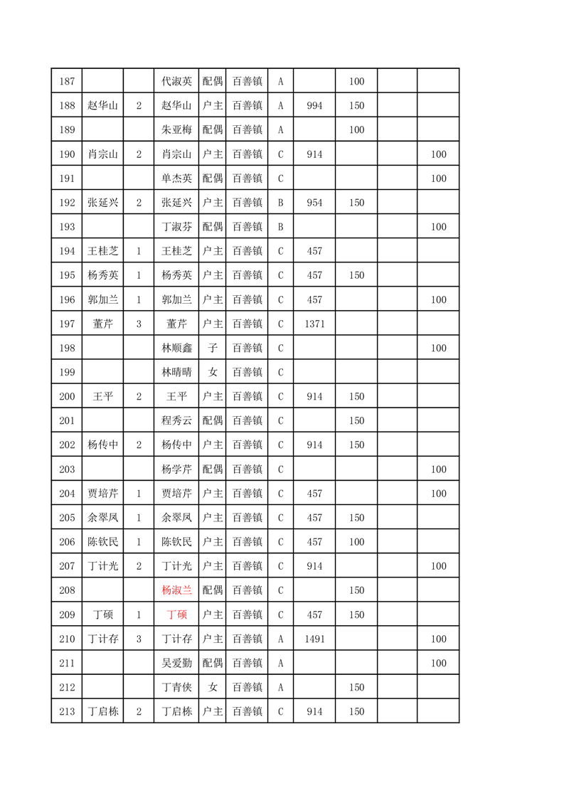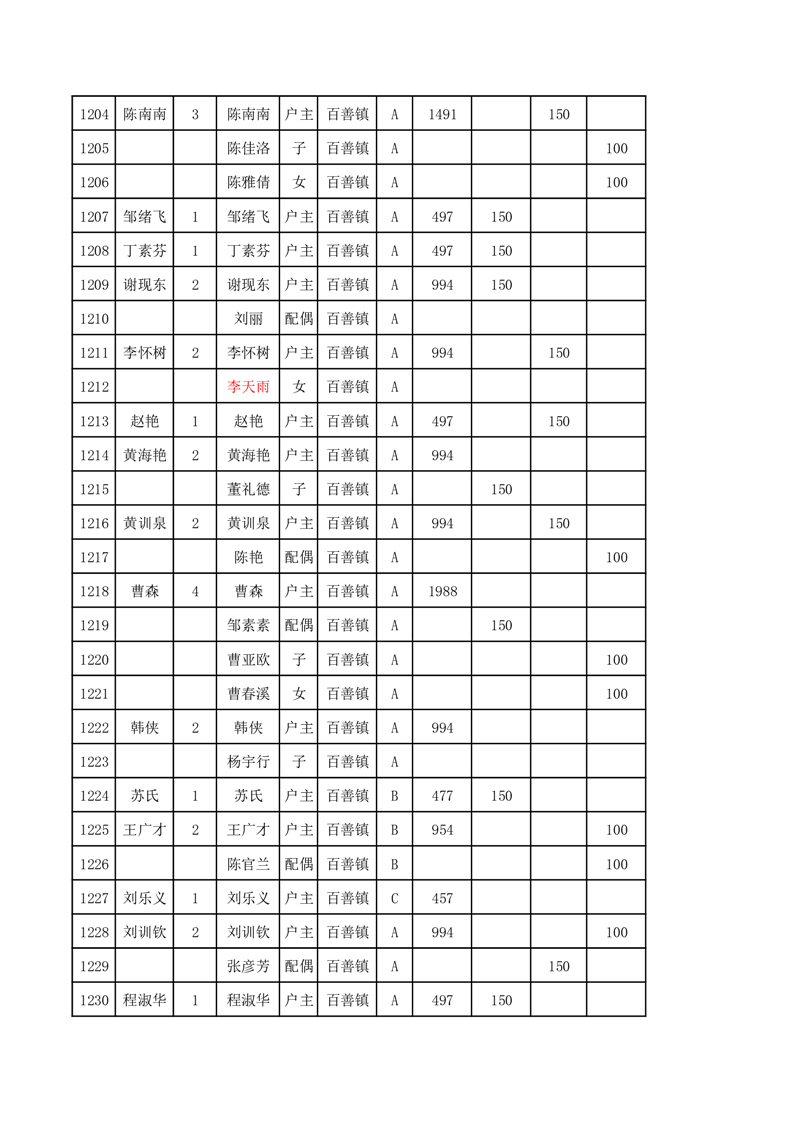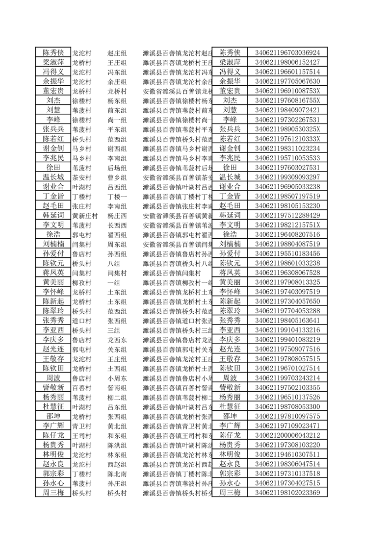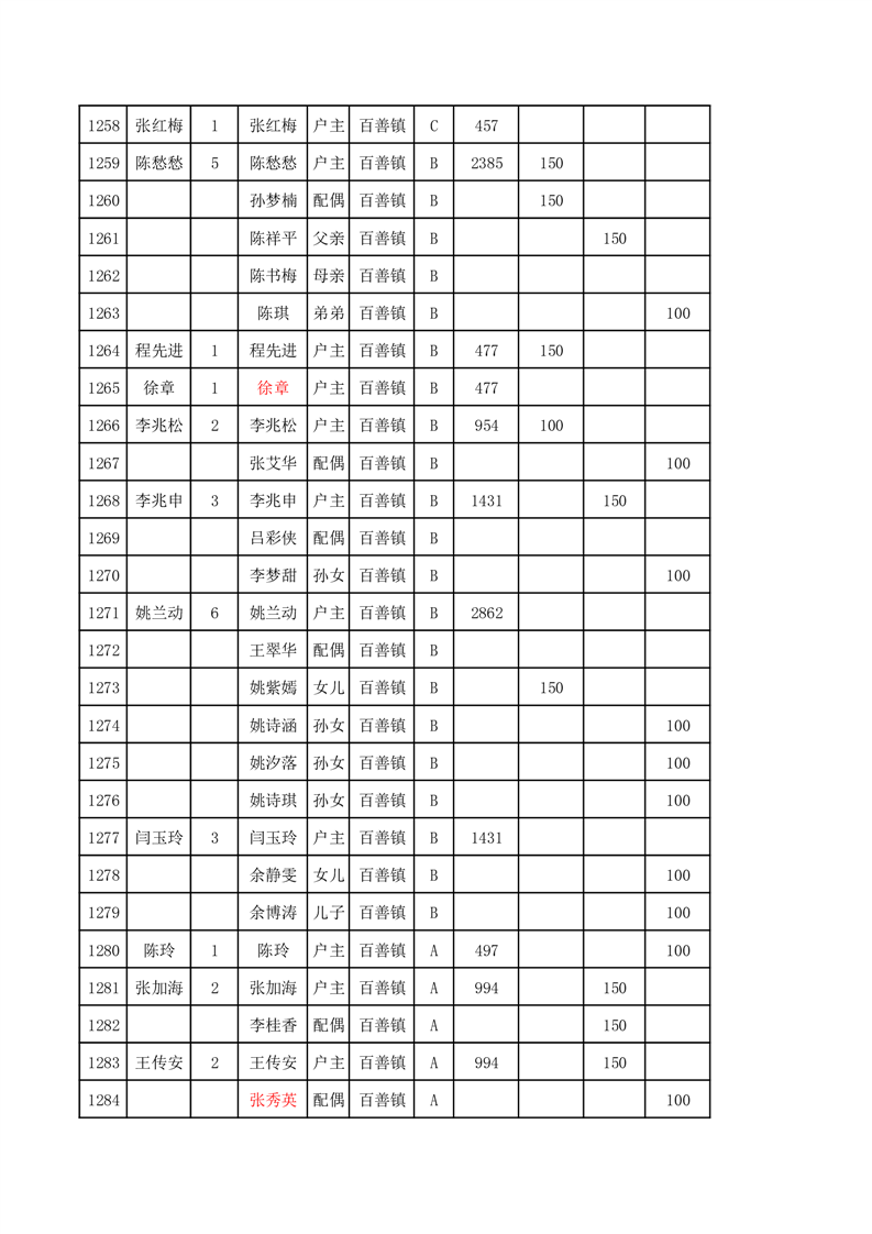 濉溪县百善镇2026年1月农村居民最低生活保障人员花名册