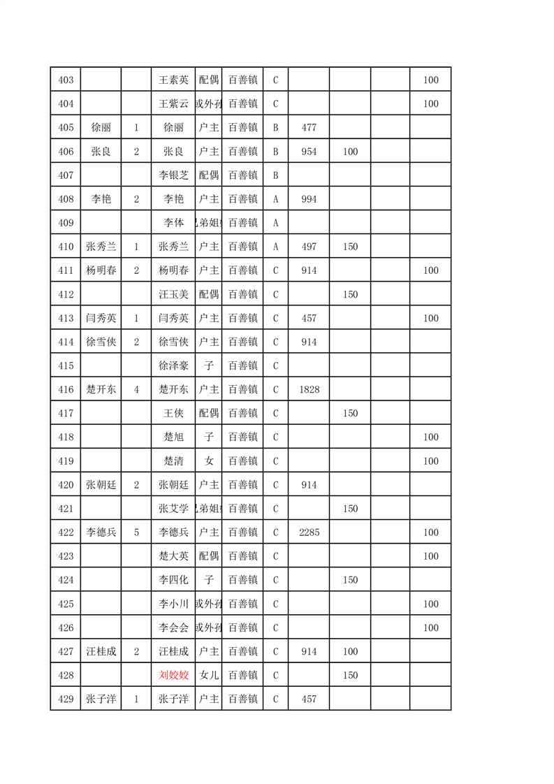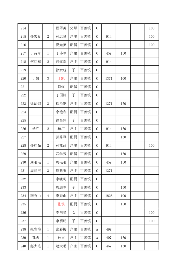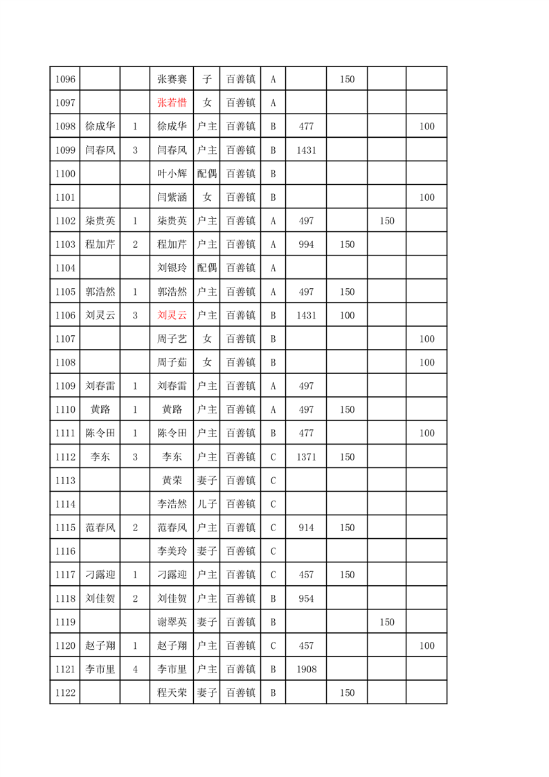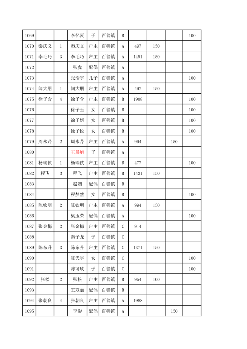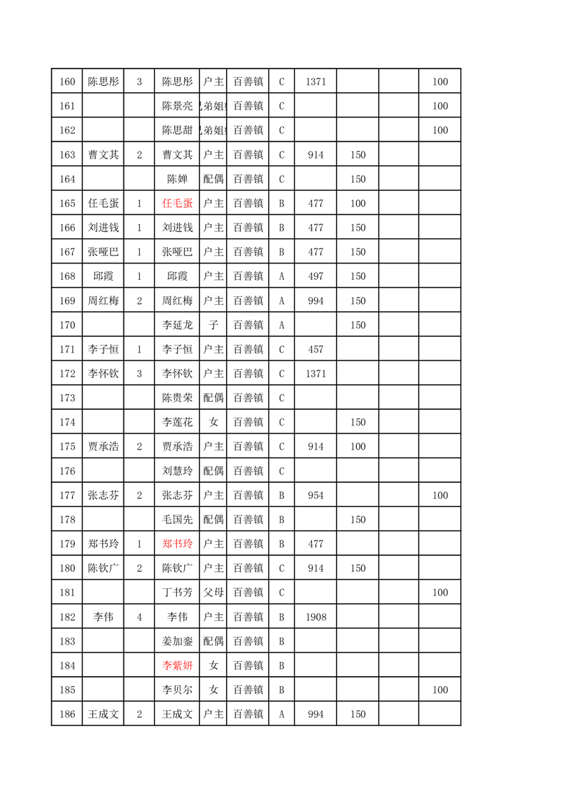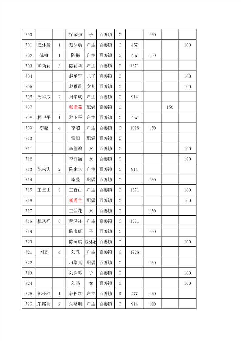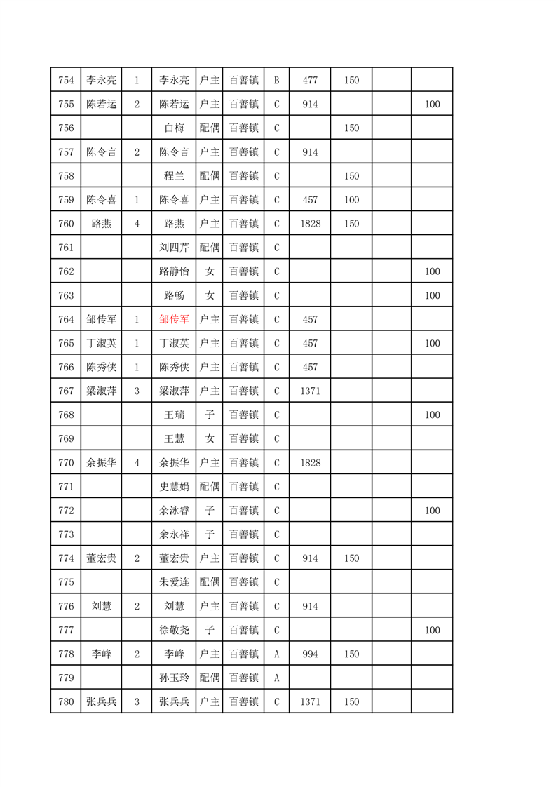 濉溪县百善镇2026年1月农村居民最低生活保障人员花名册