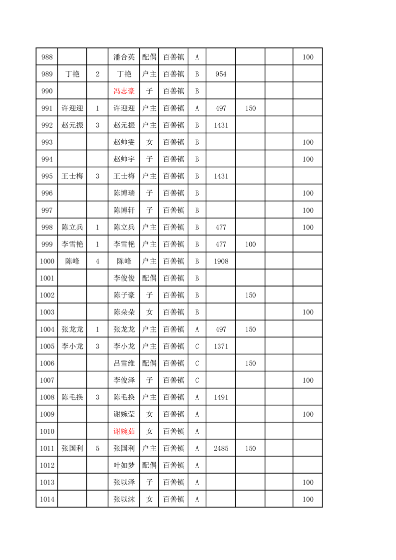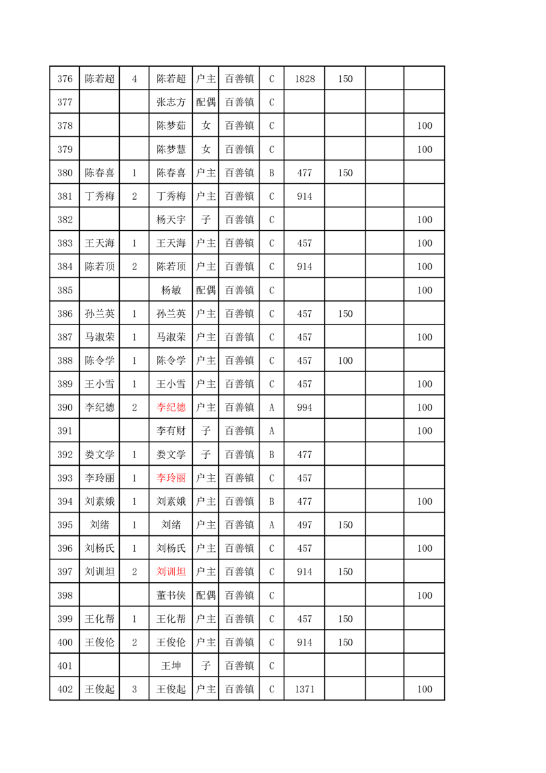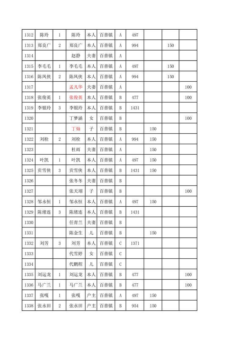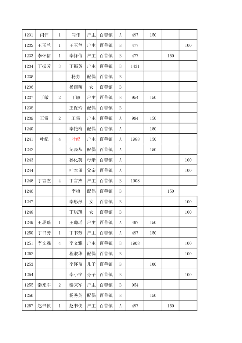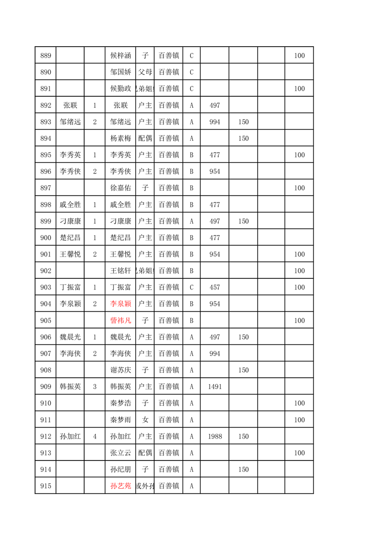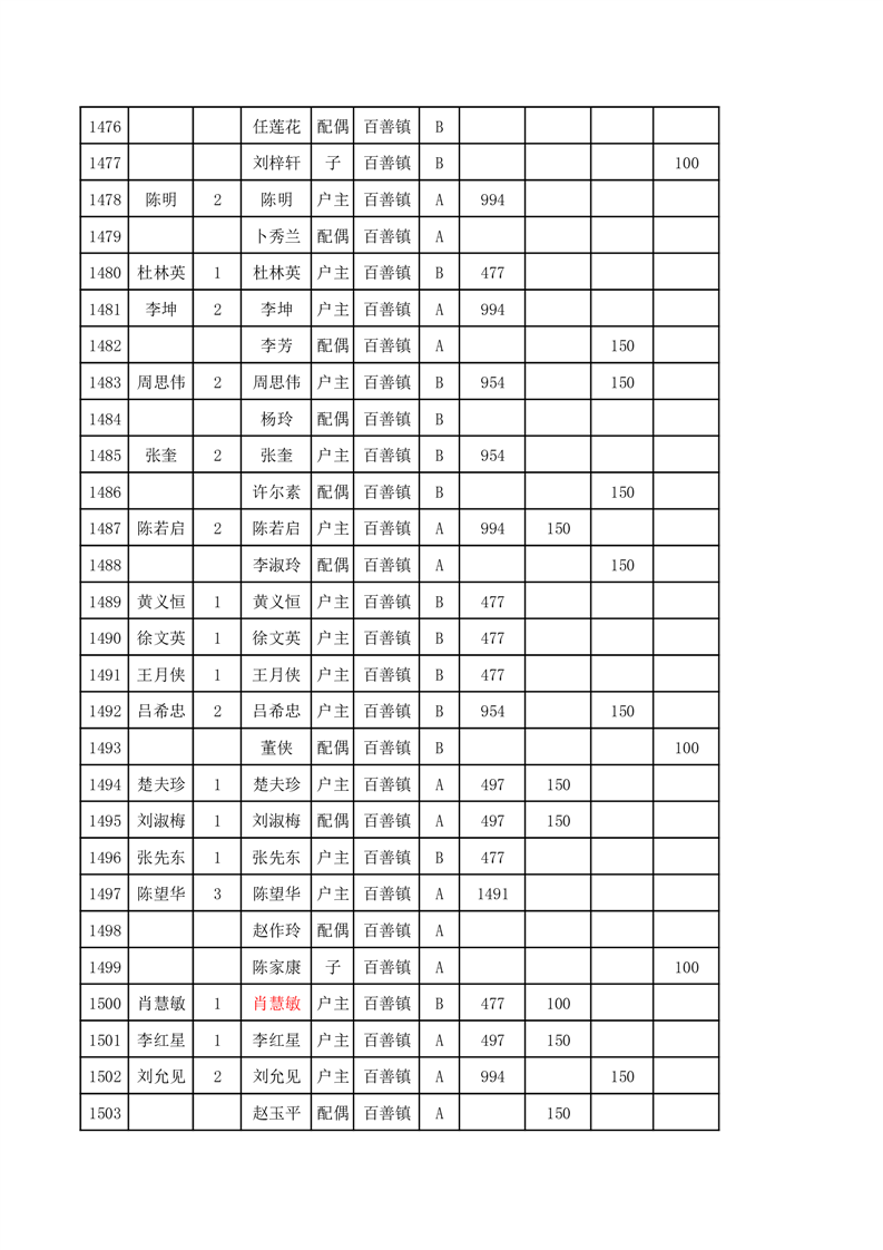 濉溪县百善镇2026年1月农村居民最低生活保障人员花名册