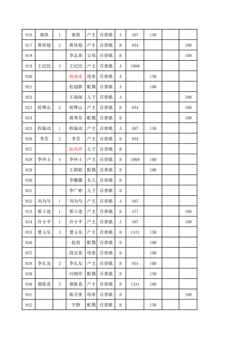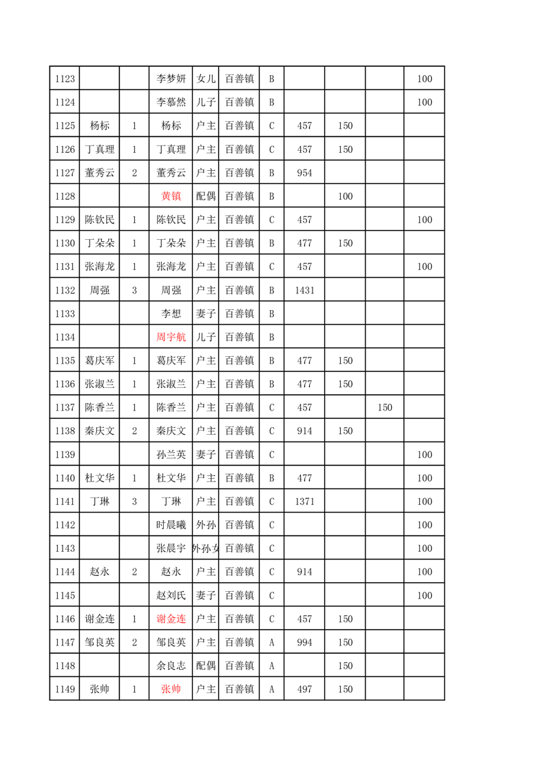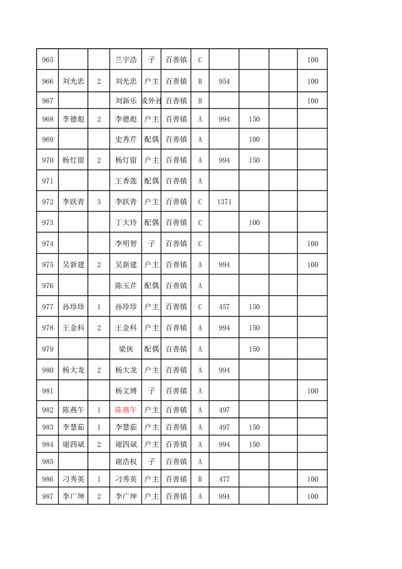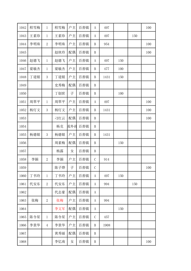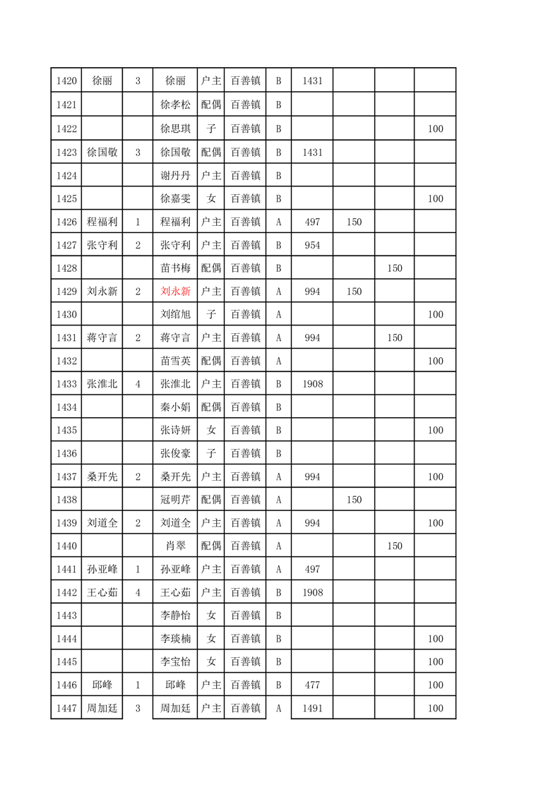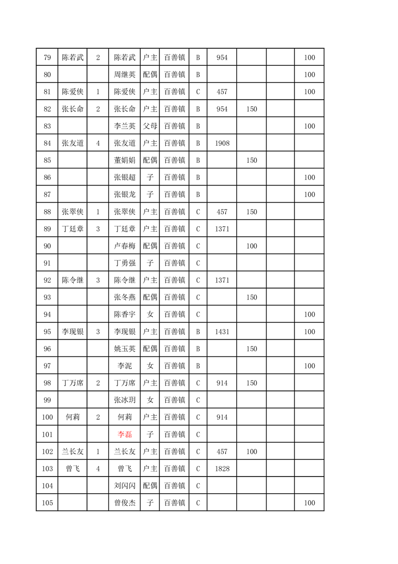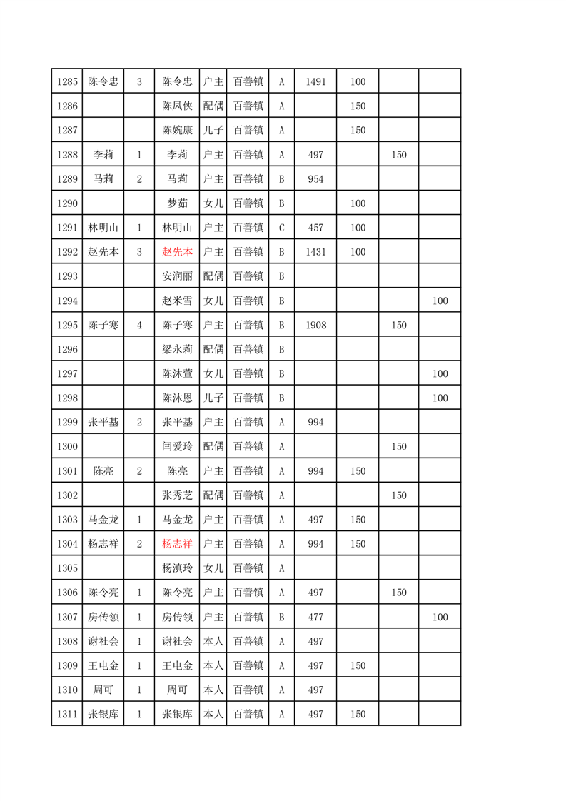 濉溪县百善镇2026年1月农村居民最低生活保障人员花名册