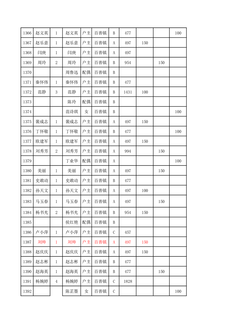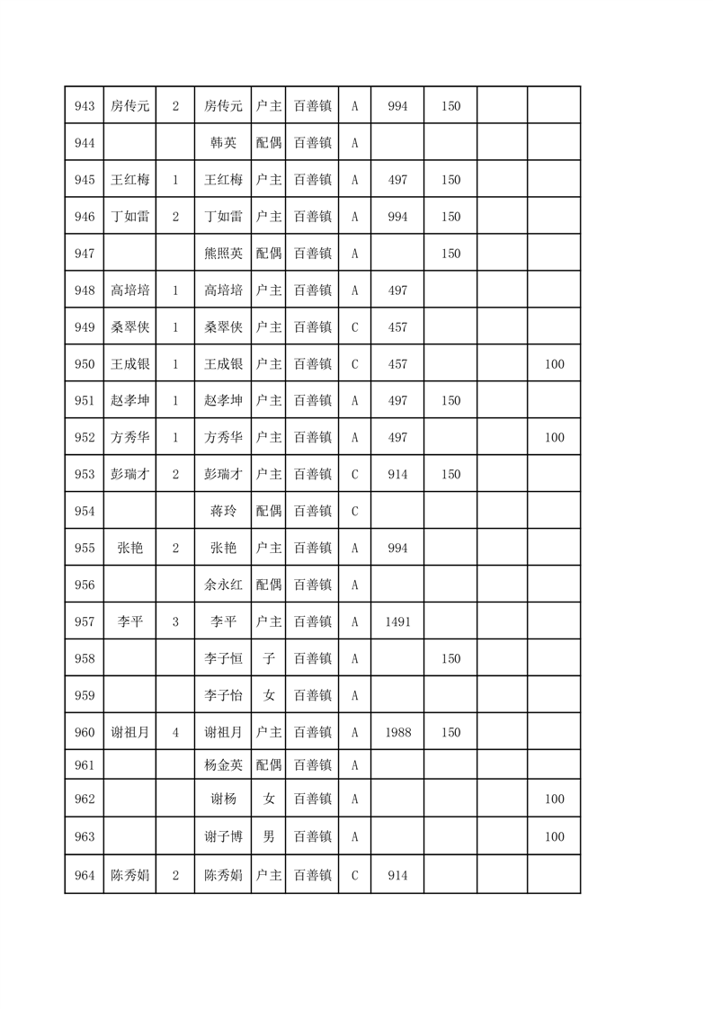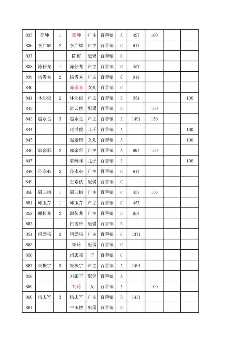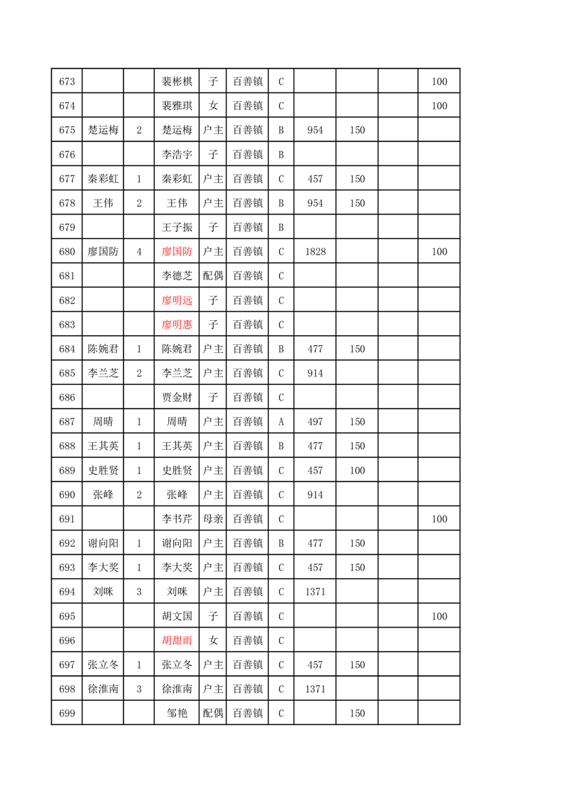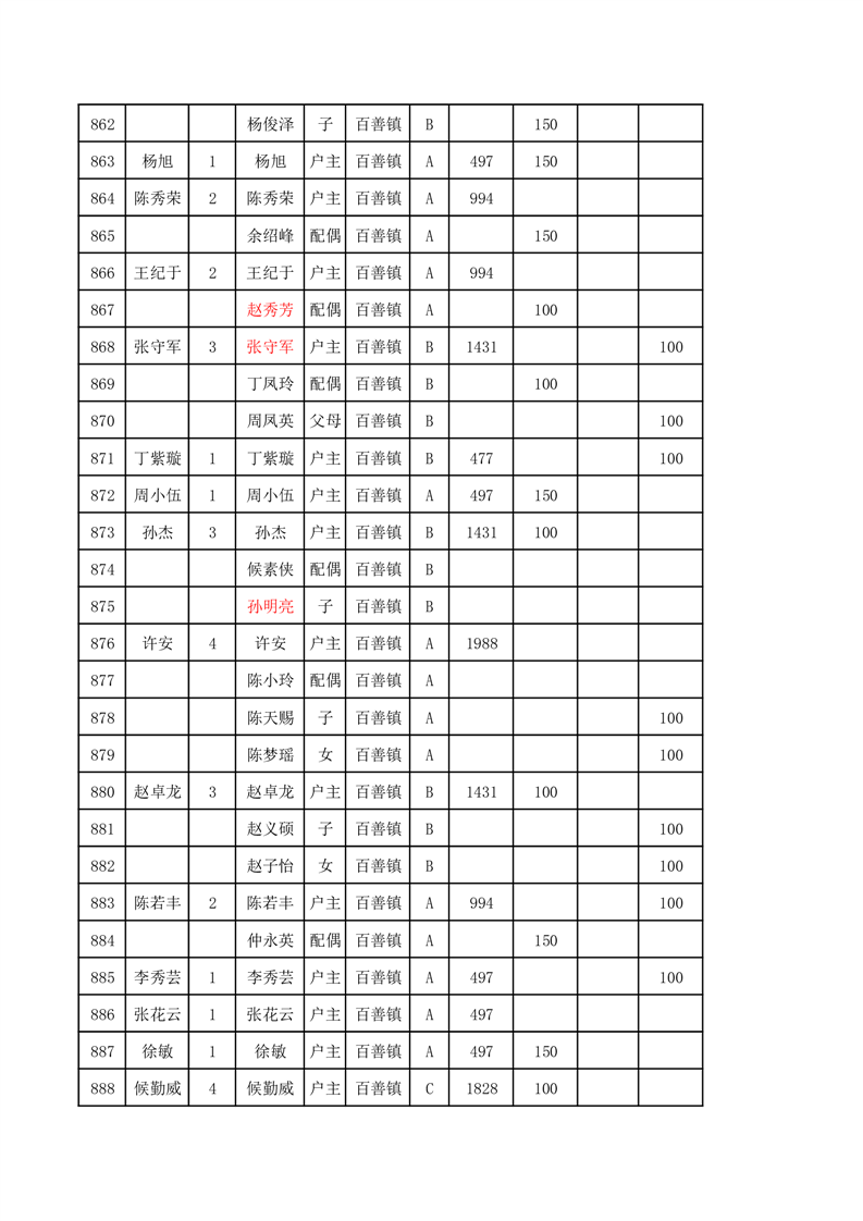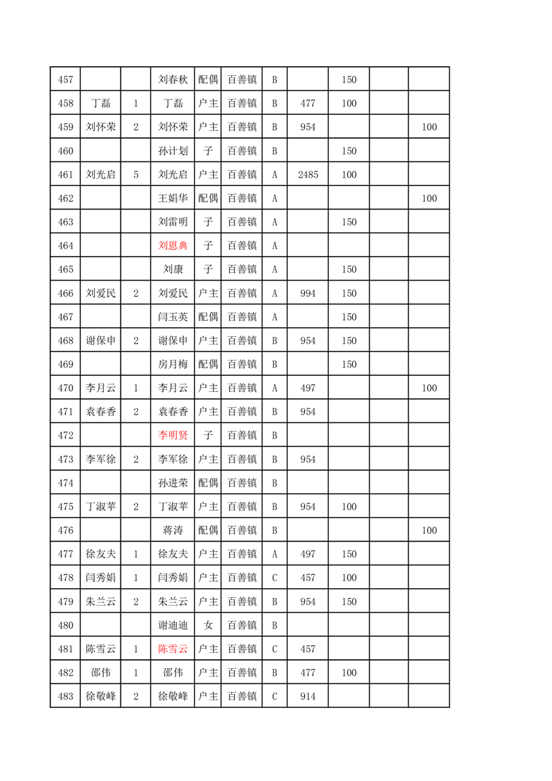 濉溪县百善镇2026年1月农村居民最低生活保障人员花名册