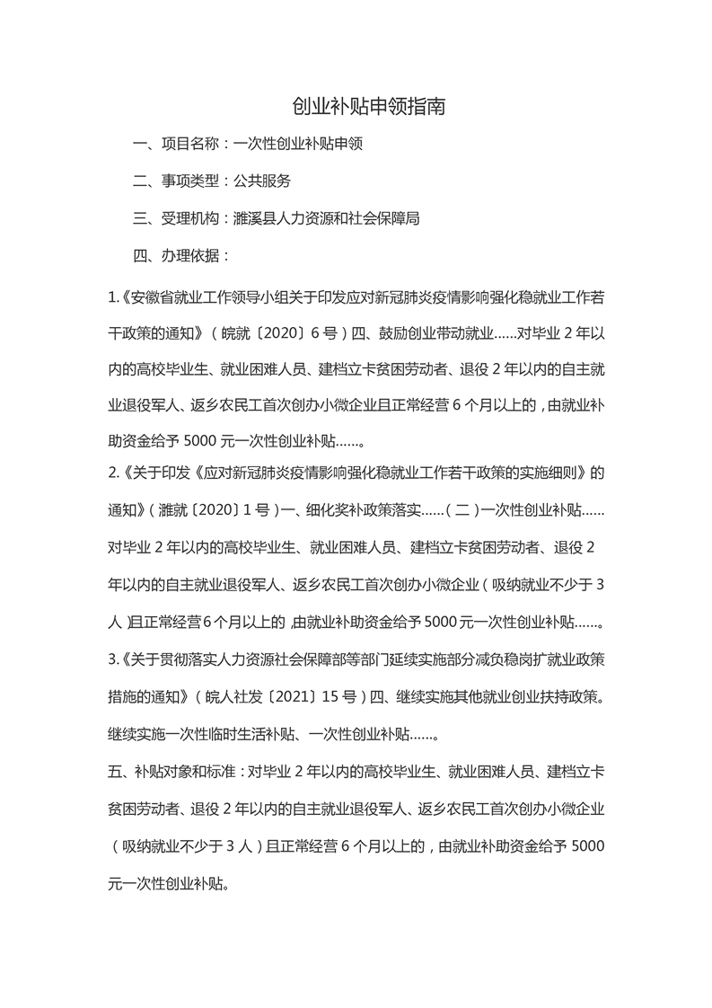 【办事指南】濉溪县南坪镇一次性创业补贴申领