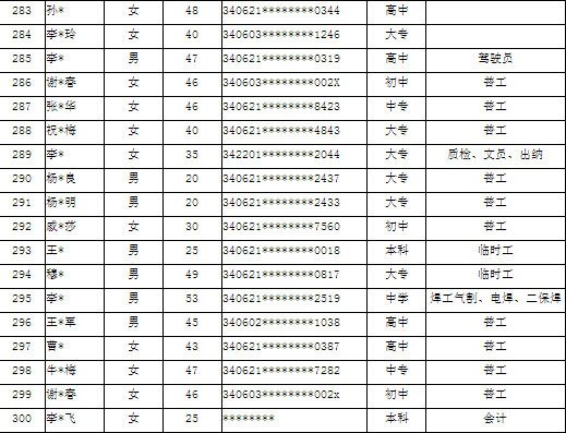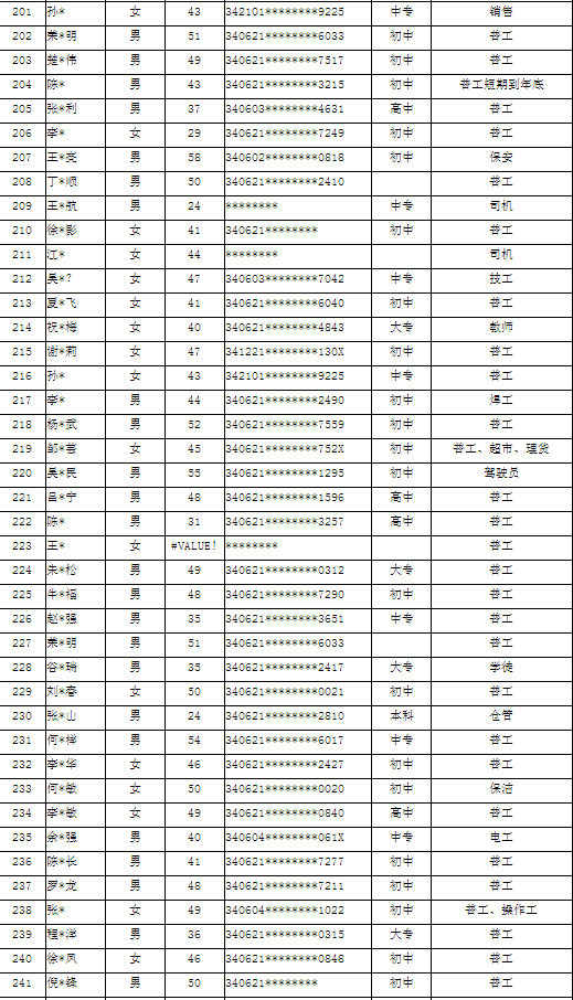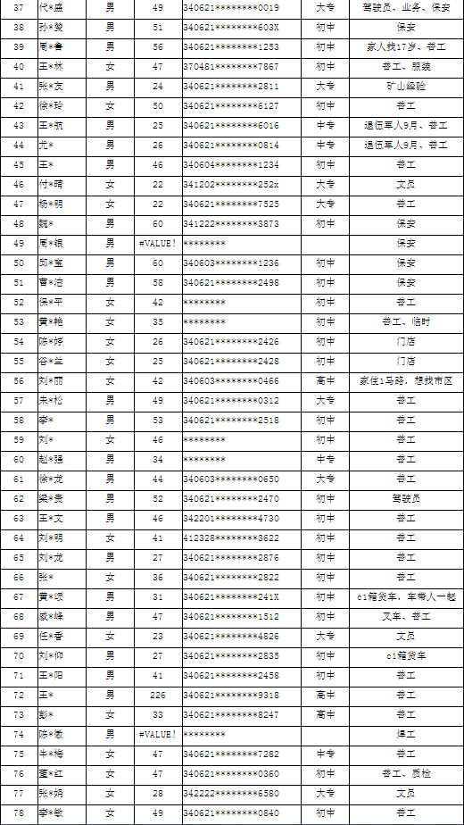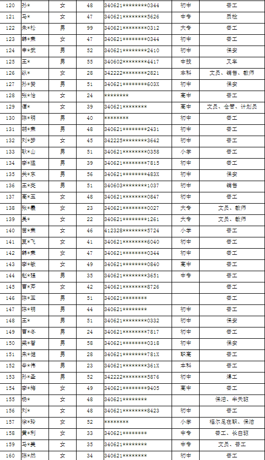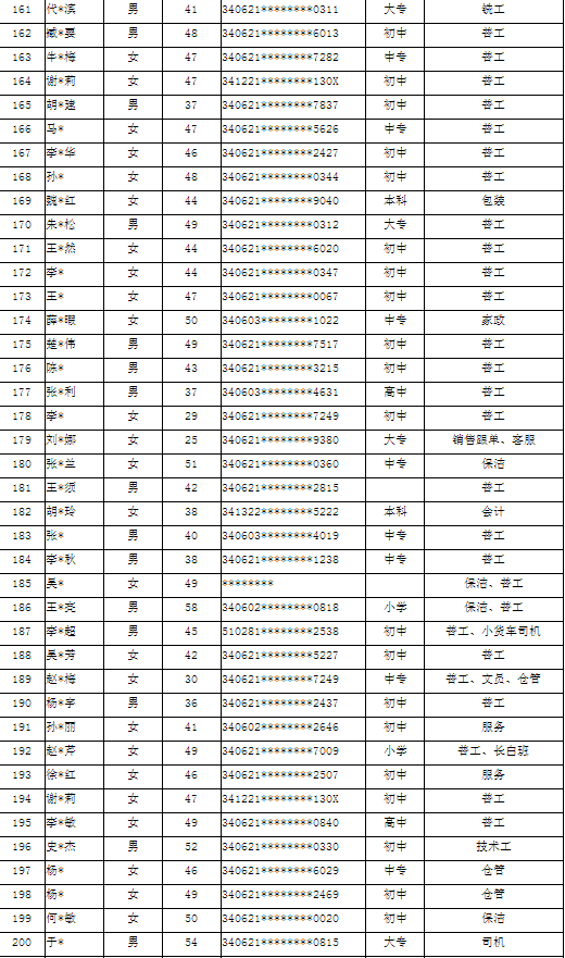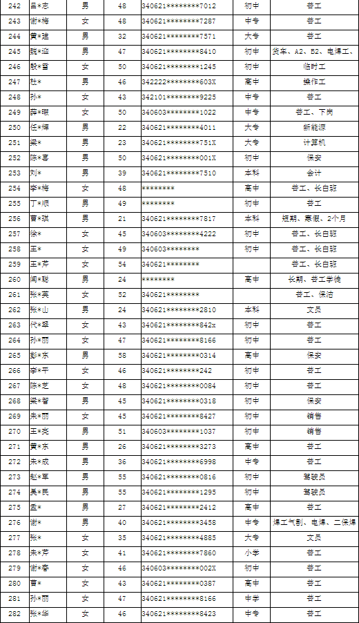 濉溪县2022年第四季度求职人员登记名单