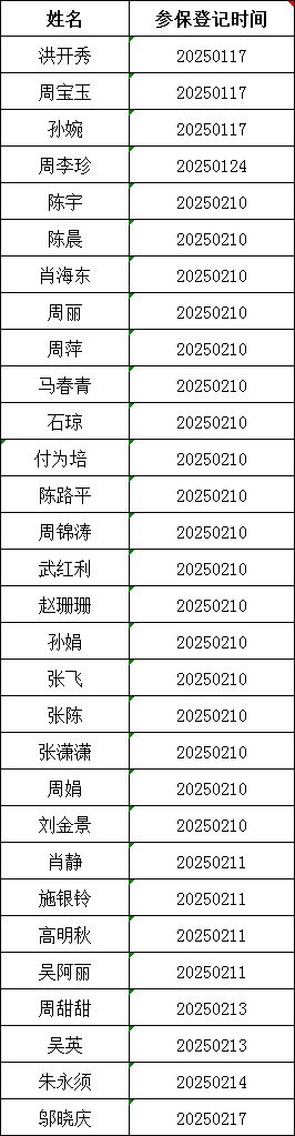 濉溪县韩村镇2025年1月份新增养老保险人员名单