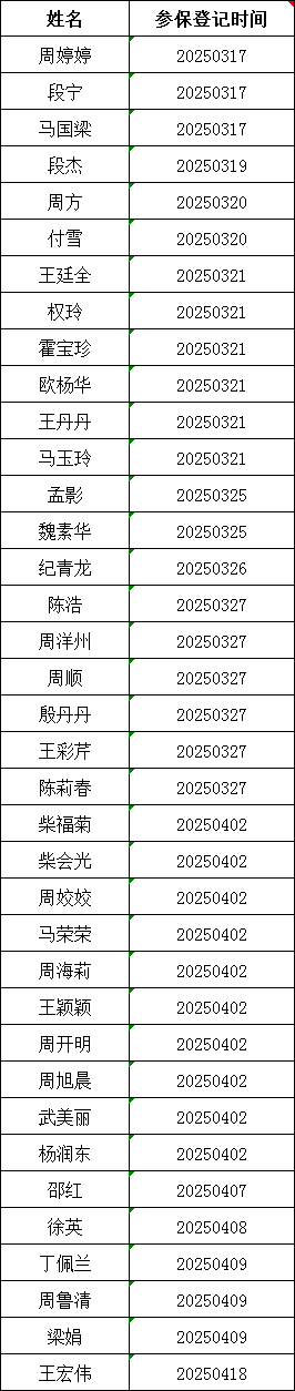 濉溪县韩村镇2025年3月份新增养老保险人员名单