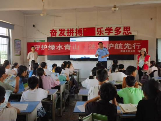 活动现场,司法所工作人员张正化身“普法小喇叭”,通过播放动画视频、情景模拟、知识抢答等形式,将法律知识与生活实际相结合。在环境保护环节,工作人员以“垃圾分类大挑战”“塑料降解时间问答”等互动游戏,引导同学们树立绿色环保理念;反诈防骗板块,通过模拟“陌生快递”“扫码领礼品”等常见骗局场景,教会同学们识破诈骗陷阱;防溺水知识讲解中,利用救生圈、长竹竿等道具演示正确施救方法,提醒大家牢记“六不准”原则;抵制校园欺凌环节,同学们踊跃参与“友善小使者”角色扮演,学会用法律武器保护自己。