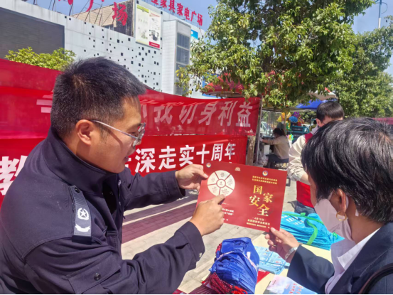 活动现场,工作人员通过悬挂条幅、设置法治咨询台、摆放宣传展板和发放宣传材料等形式,向过往群众宣传《中华人民共和国国家安全法》《中华人民共和国反恐怖主义法》 及扫黑除恶、反电信诈骗、防邪反邪等涉及国家安全的相关法律法规。同时,从国家安全的概念、公民维护国家安全的义务等方面进行深入讲解,普及国家安全知识,让群众深刻认识到国家安全的重要性,引导大家主动关心国家安全,自觉维护国家利益。