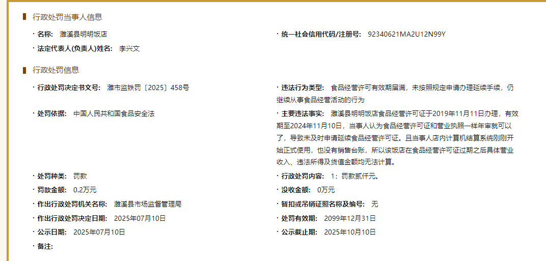 【行政处罚】铁佛镇2025年食品生产经营行政处罚
