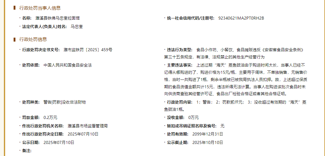【行政处罚】铁佛镇2025年食品生产经营行政处罚