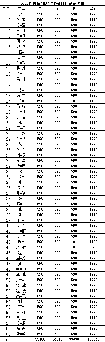 【公益性岗位补贴申领】2020年第三季度公益性岗位补贴花名册