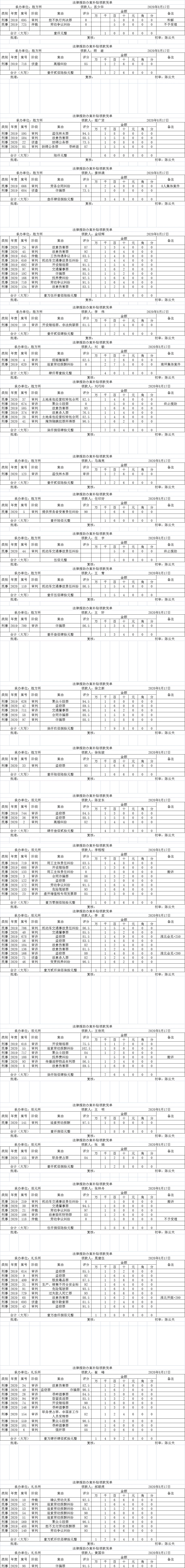 【案件补贴审核发放表】2020年法律援助案件补贴审核发放凭单6——8月份