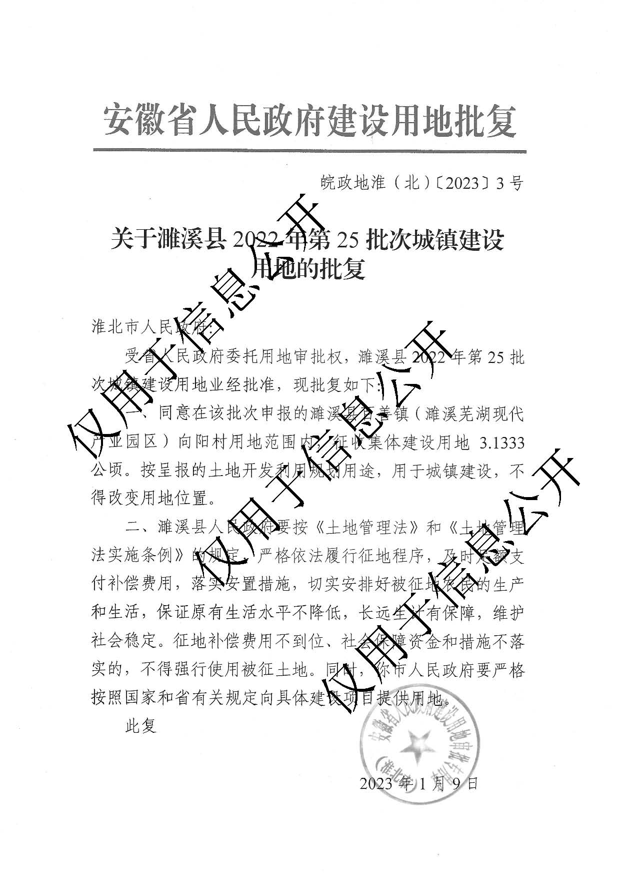 | 文 号: | 皖政地淮(北)〔2023〕3号 |