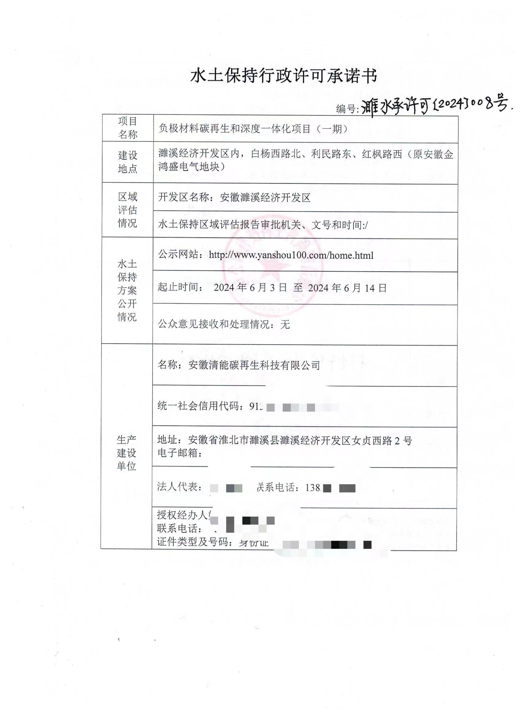 负极材料碳再生和深度一体化项目(一期)水土保持行政许可承诺书