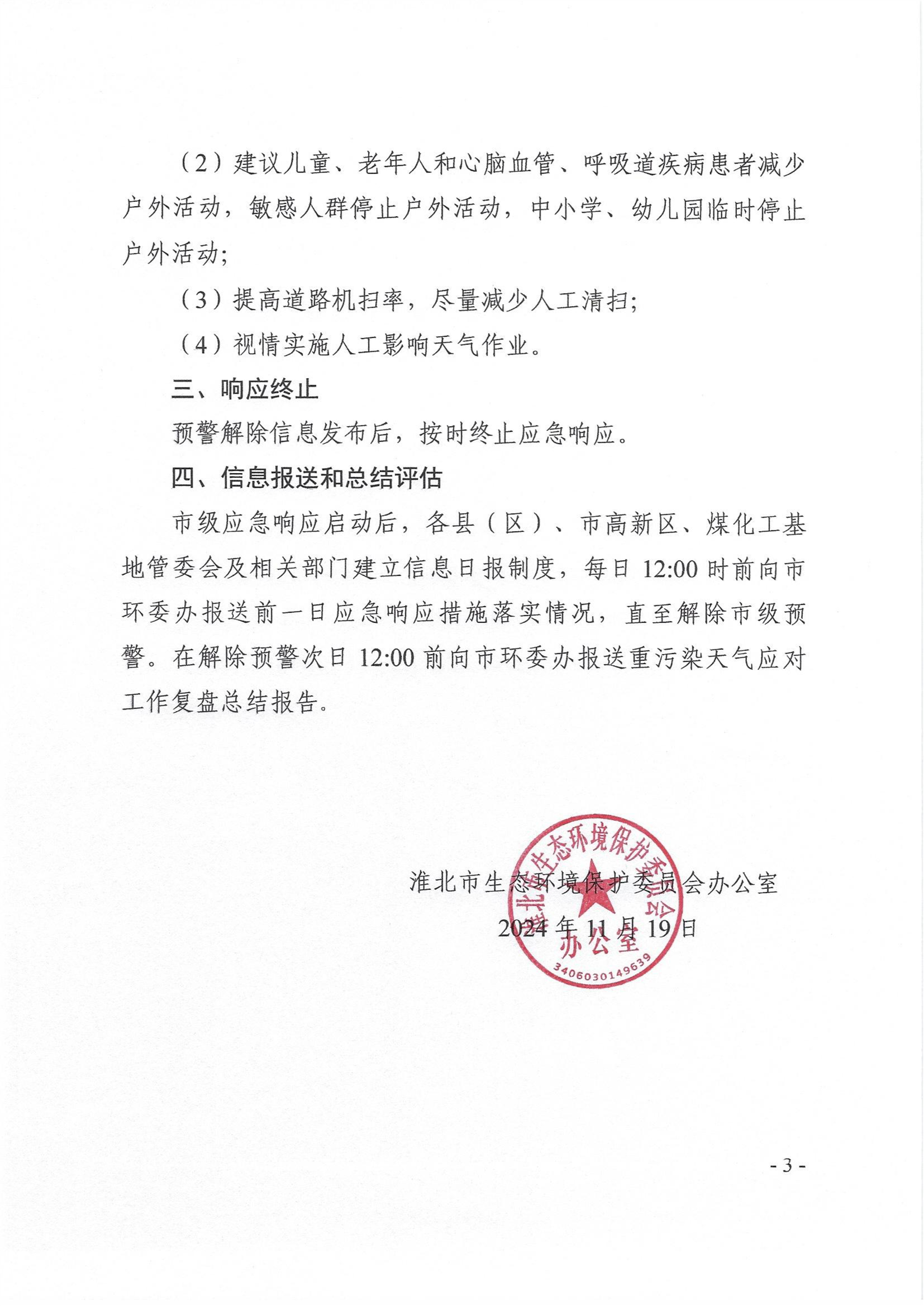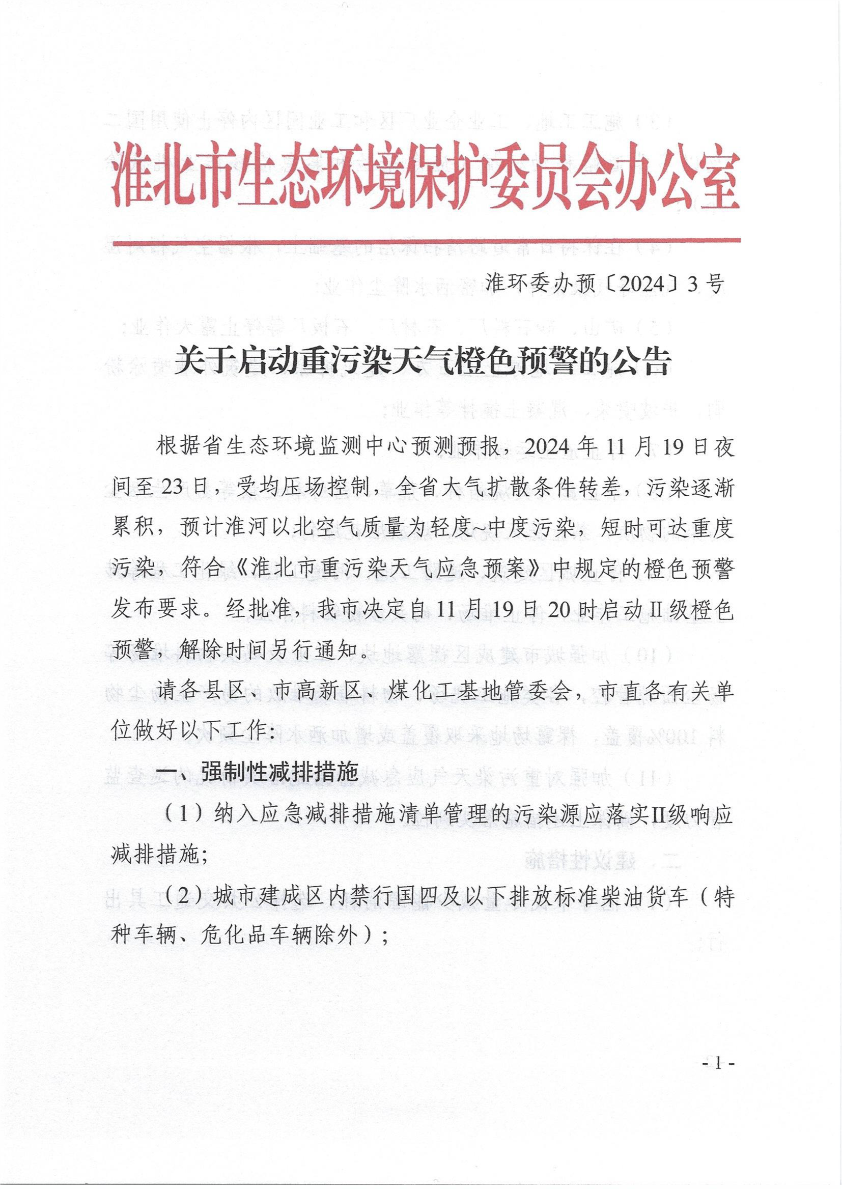 淮环委办预〔2024〕3号关于启动重污染天气橙色预警的公告