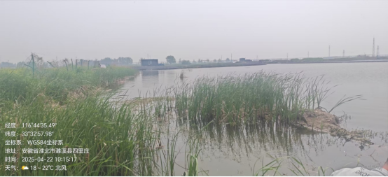 2025年4月22日,孙疃镇政府、县生态环境分局联合对该塌陷区进行现场检查,塌陷区有人正在塘边钓鱼,目测,该塌陷区水塘水质清澈,未发现有倾倒养殖粪水的迹象。据养殖场负责人朱丰伟称,塌陷区养殖的珍珠、白花鲢对水质要求很高,不可能把养殖粪水倒入塌陷区内影响水质的,从来没有这种现象。我局监测人员在该塌陷区采集水样2份(包含平行样),检测结果显示:化学需氧量24mg/L 、氨氮0.591mg/L,符合地表水环境质量标准《GB3838-2002》中的IV类水标准。经和投诉人联系,投诉人称在很早以前有人向塌陷区倾倒牛粪水,现在没有这种情况。