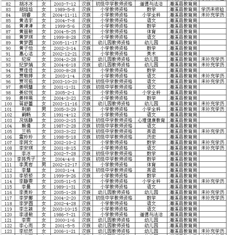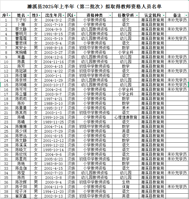 濉溪县2025年上半年(第二批次)教师资格认定结果公示