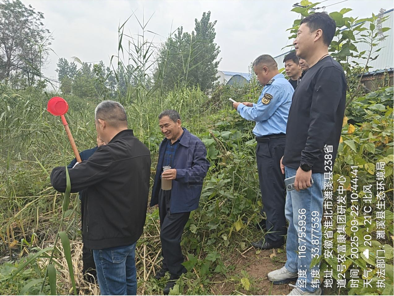 接群众投诉后,2025年9月22日上午,我局执法人员仲伟峰、陈朴、孙斌对该水沟对现场进行核查。经全面排查,在濉溪县运鑫再生资源有限责任公司与濉溪县仁德家居加工厂交界处的院墙东侧(水沟西侧)发现一处排水口正在排水(濉溪县仁德家居加工厂无工业废水产生),排水口附近有塑料编织袋碎渣,排水口附近水体微微发黑,与沟内自然水体的颜色肉眼可分,监测站已对其现场水沟水体取样,现场水体无明显恶臭飘逸、未发现有鱼类漂浮水面。