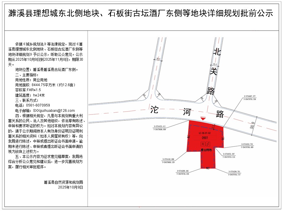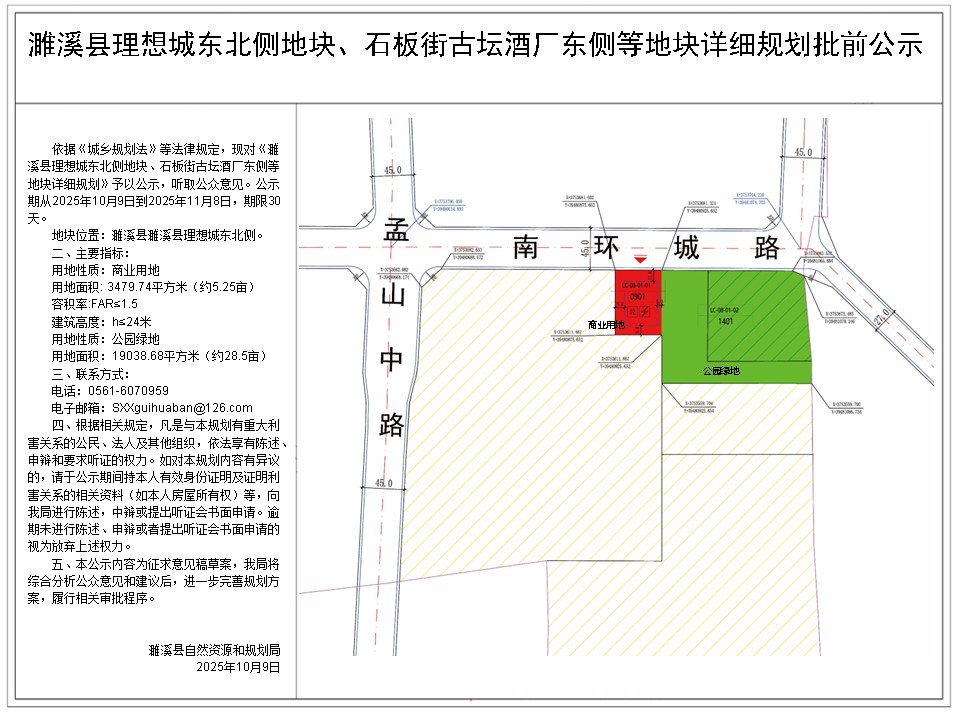 濉溪县理想城东北侧地块、石板街古坛酒厂东侧等地块详细规划批前公示