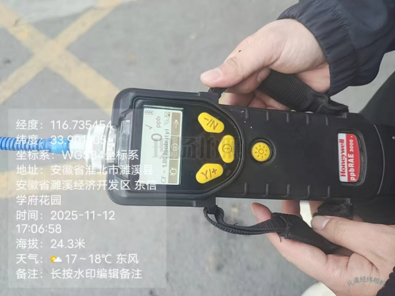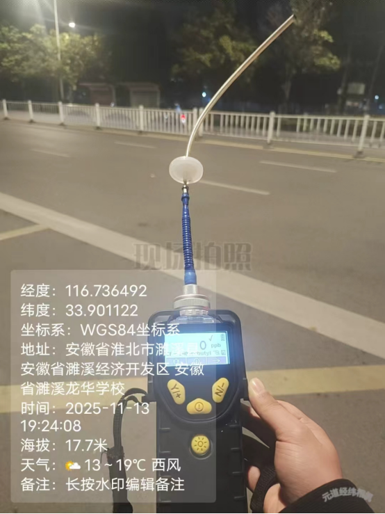 2. 针对前期投诉,我局执法人员会同监测人员于2025年11月12日、13日用便携式检测仪分别对东信学府花园小区附近和濉溪龙华学校附近空气进行监测,检测结果挥发性有机物数据为:0,数据正常,但居民仍反应有明显异味,这种差异主要源于部分污染物嗅阈值低,即使在企业达标排放的情况下仍能被人体感知;