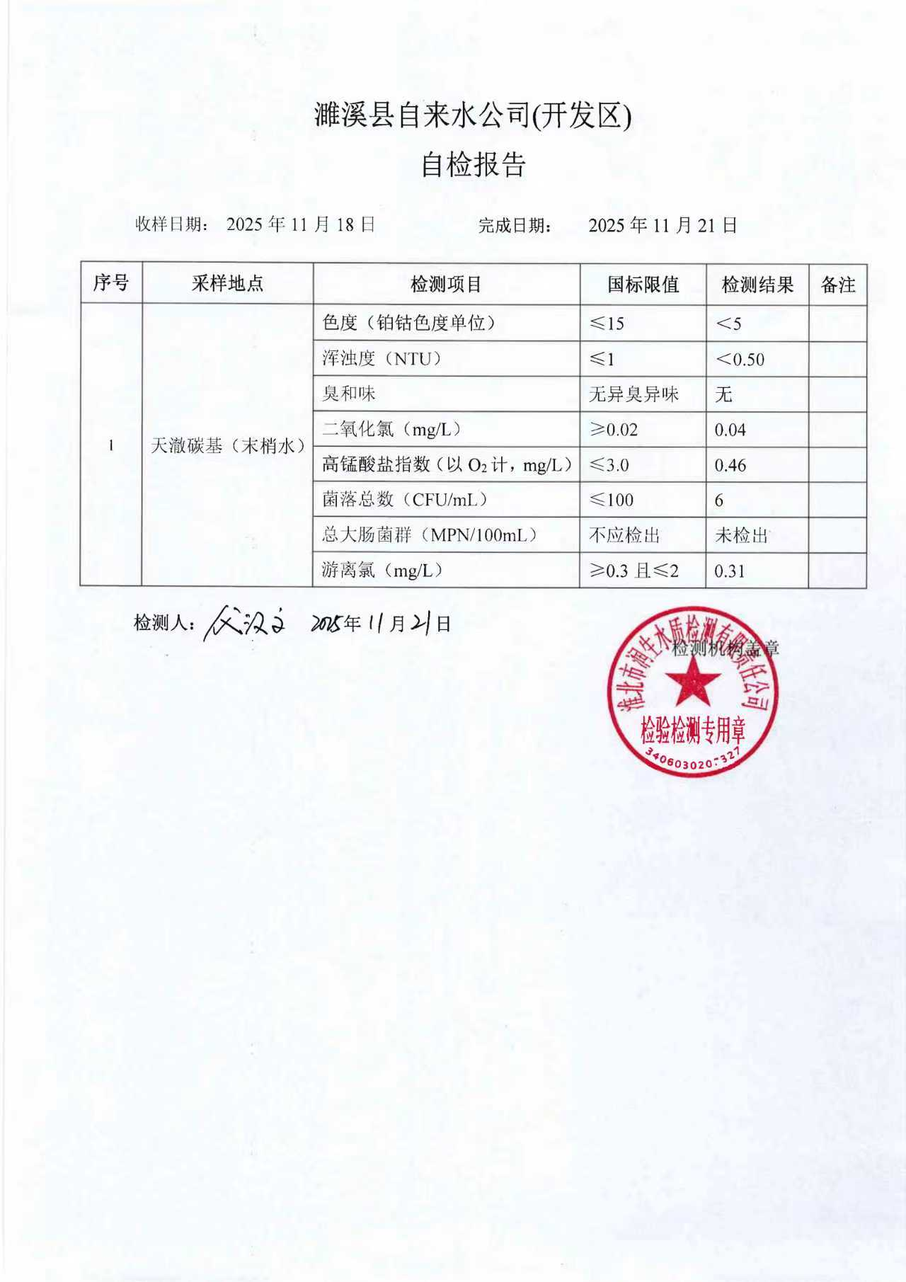 濉溪县自来水公司开发区分公司2025年11月下半月自检报告(管网水)