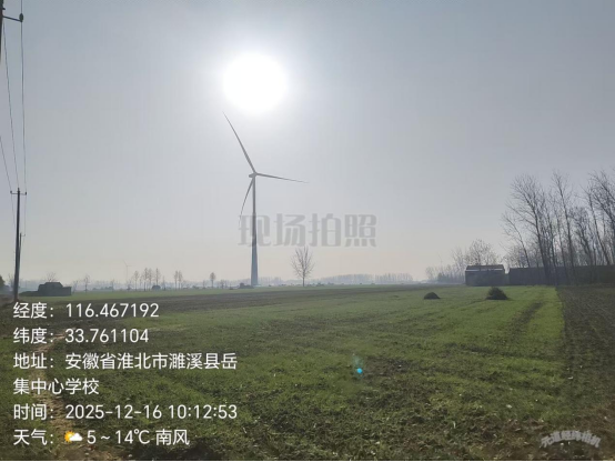 2025年12月15日,淮北市濉溪县生态环境分局接到淮北12345热线平台电话记录单,反映:“投诉人多次反映濉溪县铁佛镇岳集村李楼庄与杨庄之间东侧位置风力发电机器全天运行,噪音扰民严重,前期部门答复接到本次反映后铁佛镇再次与华能濉溪风电场运维人员取得联系,要求该公司落实整改措施,拿出整改办法,反映人表示至今未整改,目前夜间仍存在噪音,要求相关部门告知风力发电机器夜间未停止运行原因。”的投诉后,立即前往现场调查核实。具体情况如下: