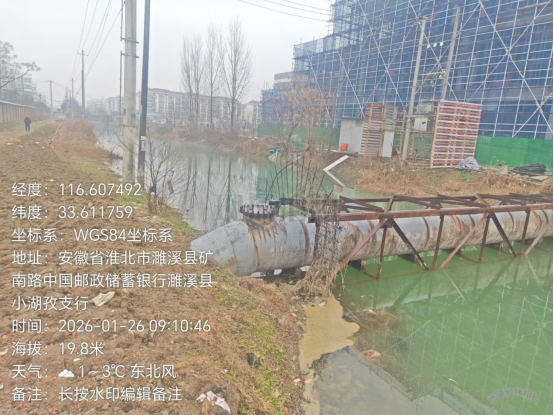 2026年1月26日,濉溪县生态环境分局执法人员联合韩村镇环保站工作人员对群众反映韩村镇小湖孜街北侧河沟污染问题进行现场检查,检查情况如下:
