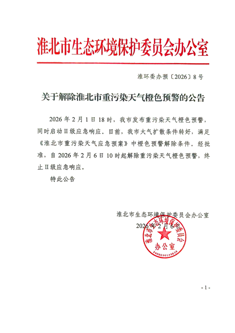 淮环委办预〔2026〕8号关于解除重污染天气橙色预警的公告