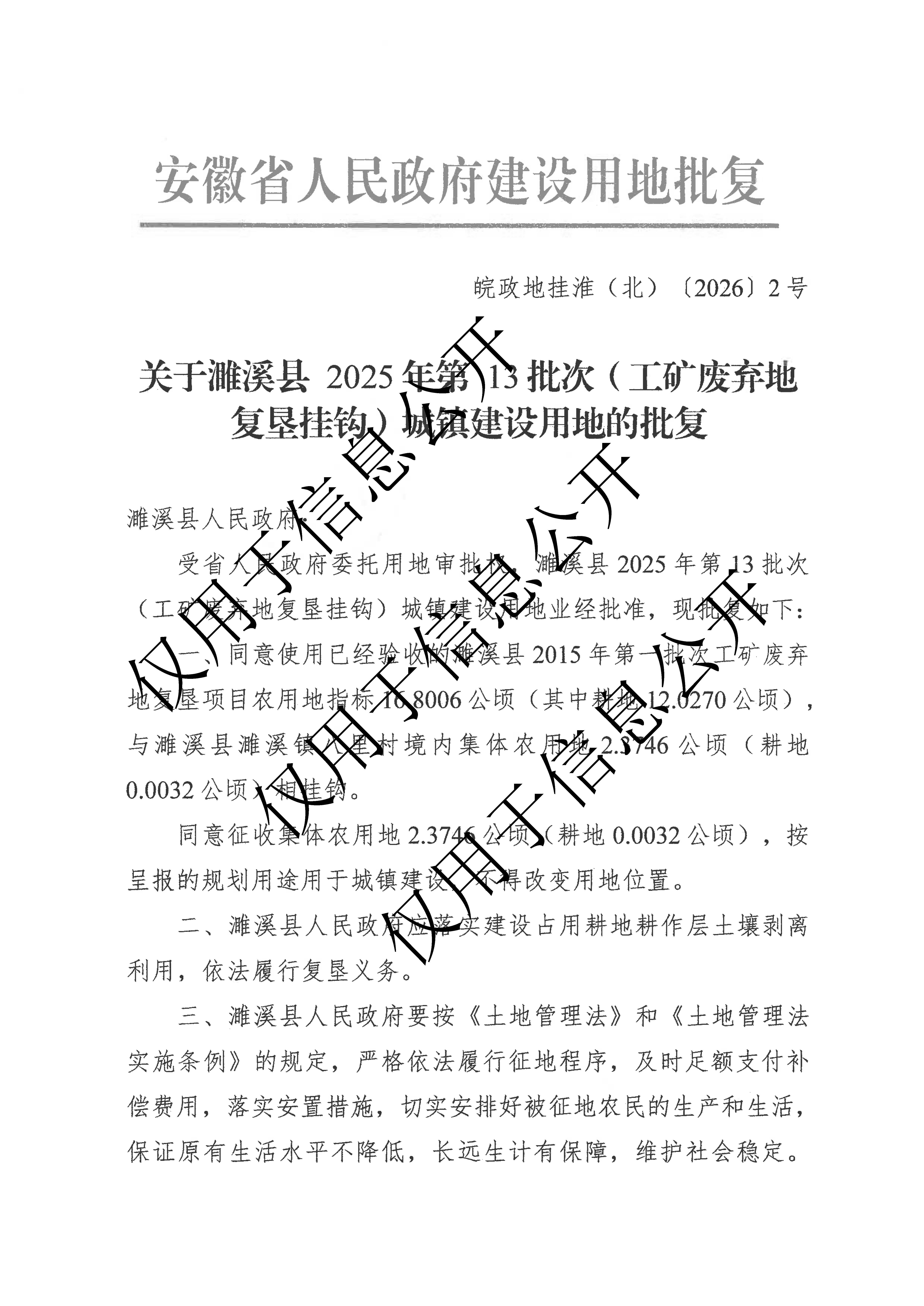 | 文 号: | 皖政地挂淮(北)〔2026〕2号 |