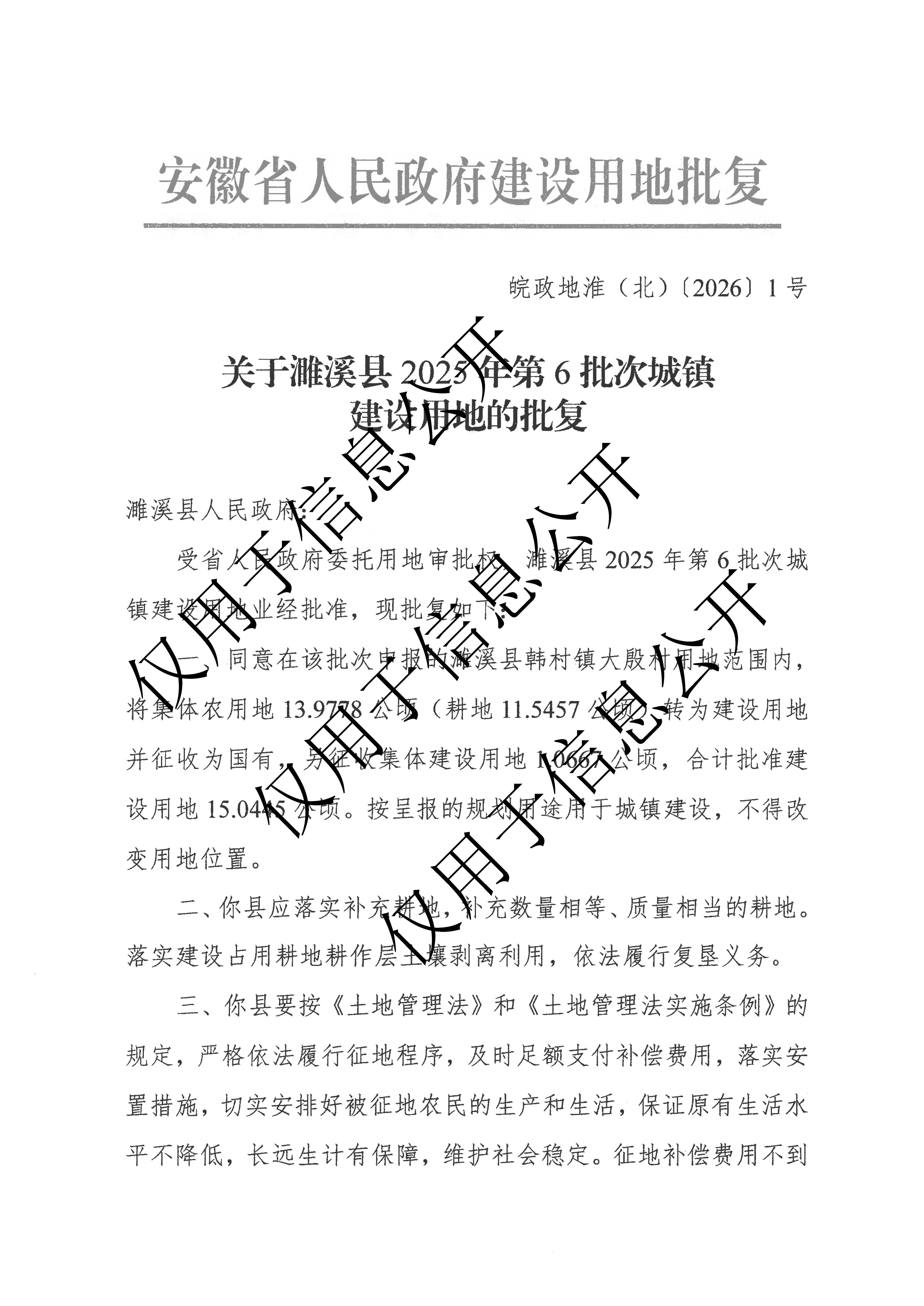 | 文 号: | 皖政地淮(北)〔2026〕1号 |