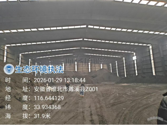 1月29日,淮北市生态环境局执法支队会同濉溪县生态环境分局、刘桥镇环保办前往现场调查处理,现场检查时发现: