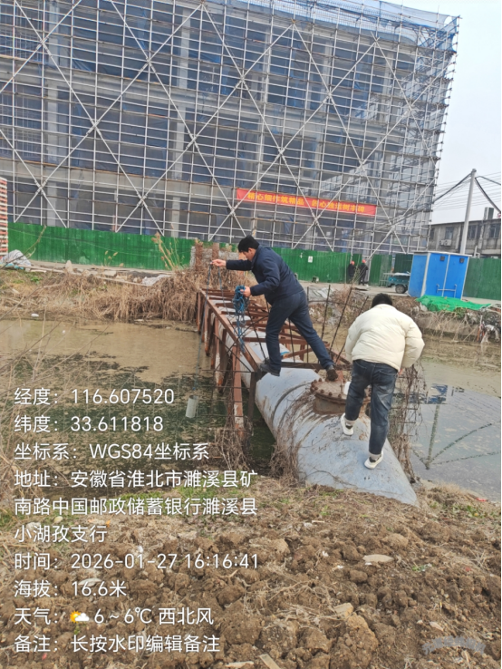 2026年2月26日,濉溪县生态环境分局执法人员联合韩村镇环保站工作人员对群众反映韩村镇小湖孜街北侧河沟污染问题进行现场检查,检查情况如下: