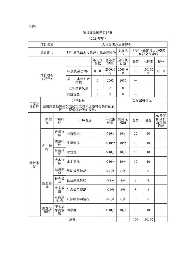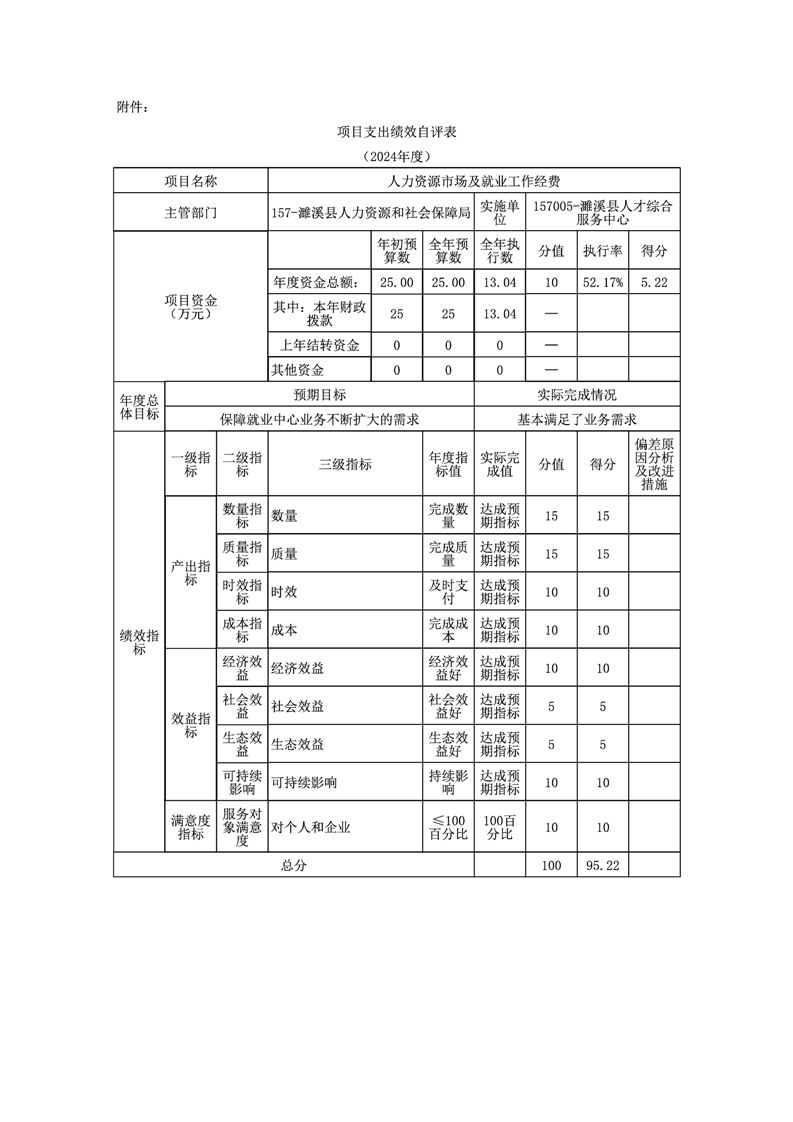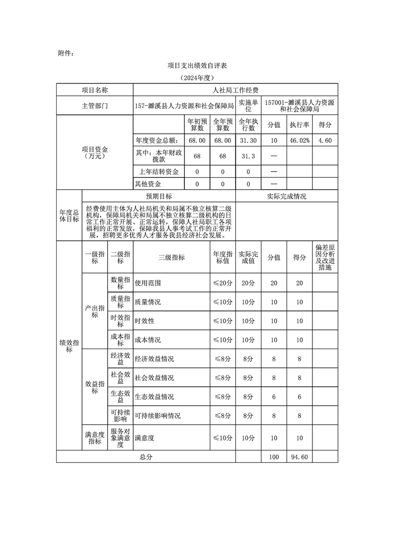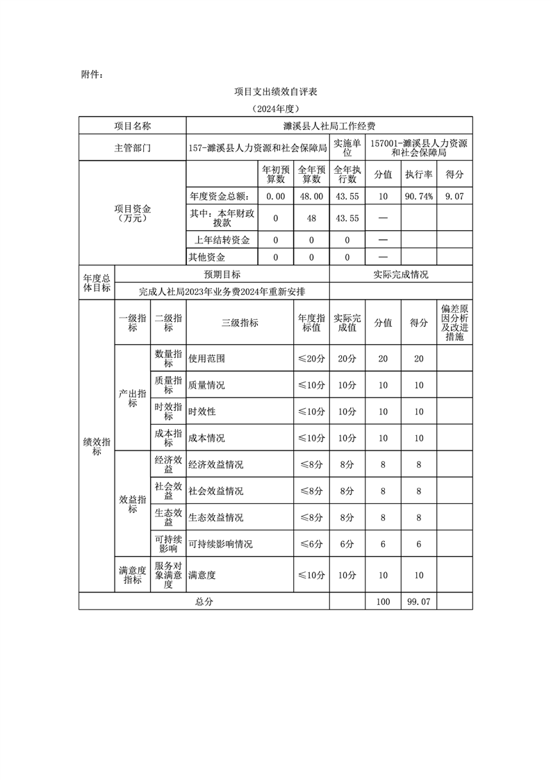 濉溪县人力资源和社会保障局2024年度部门项目绩效自评结果及绩效评价报告