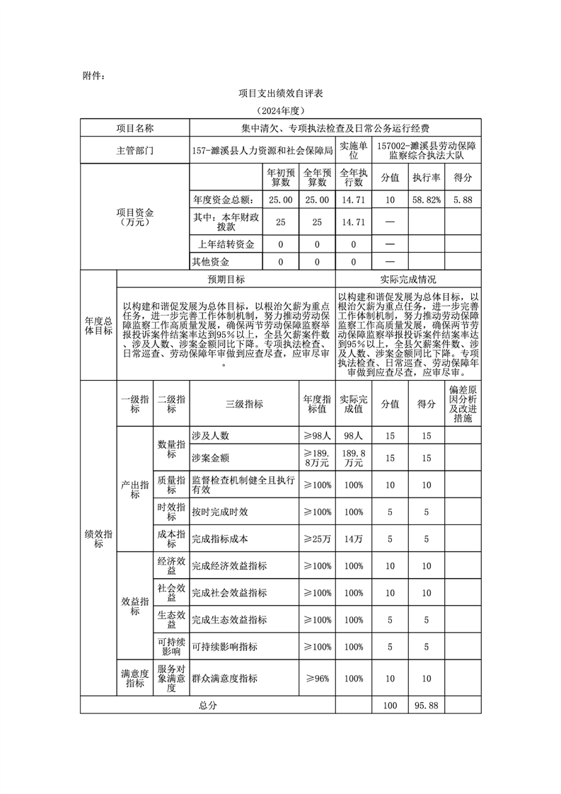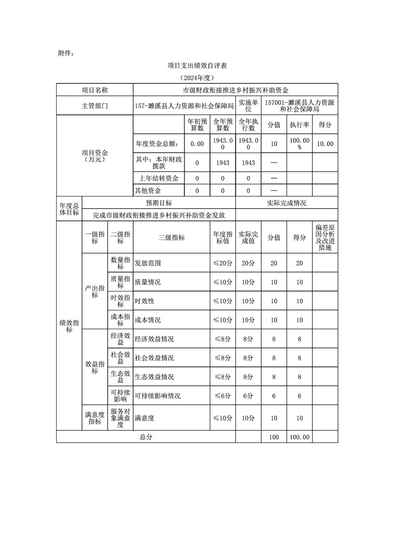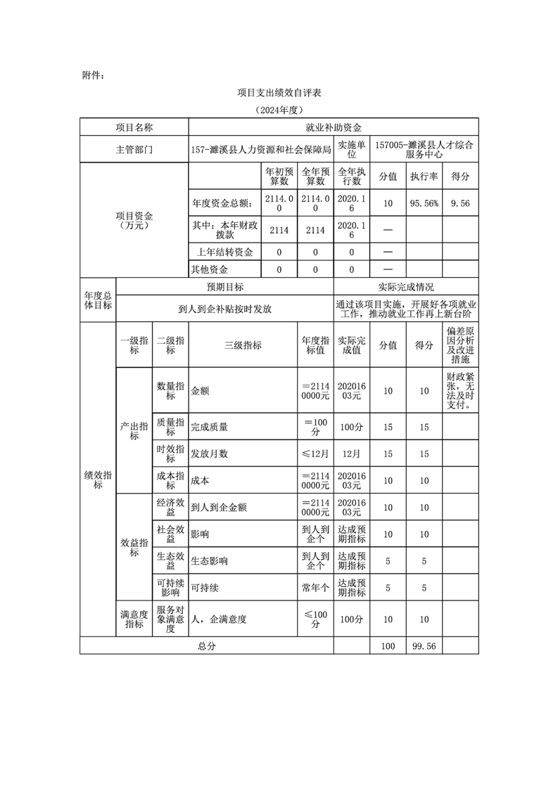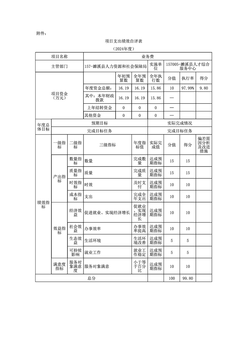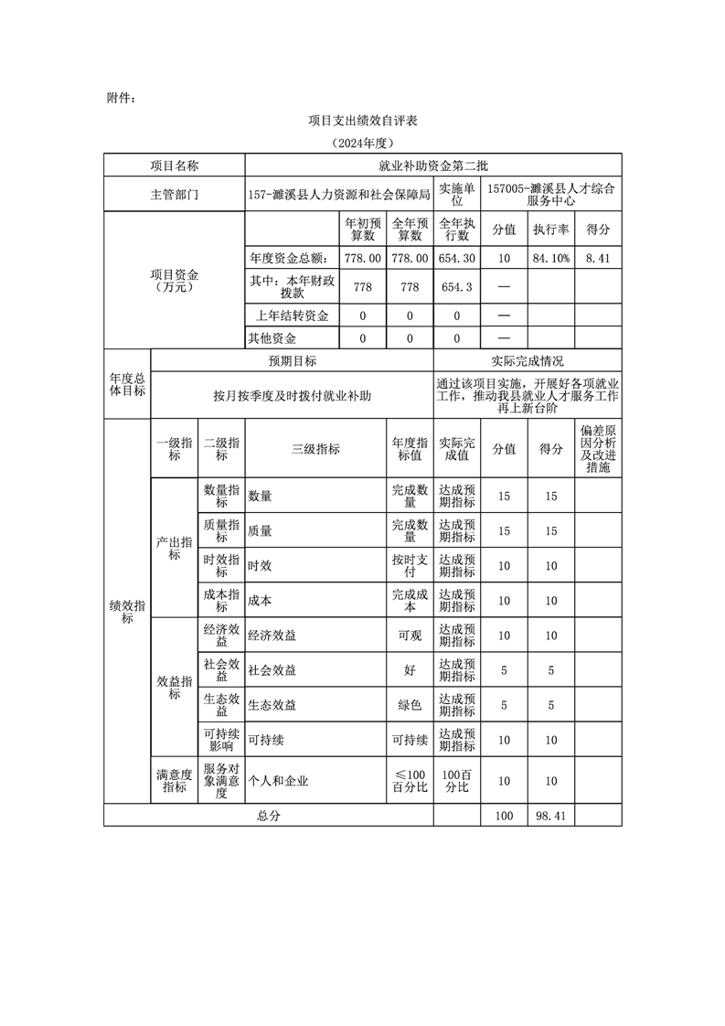 濉溪县人力资源和社会保障局2024年度部门项目绩效自评结果及绩效评价报告