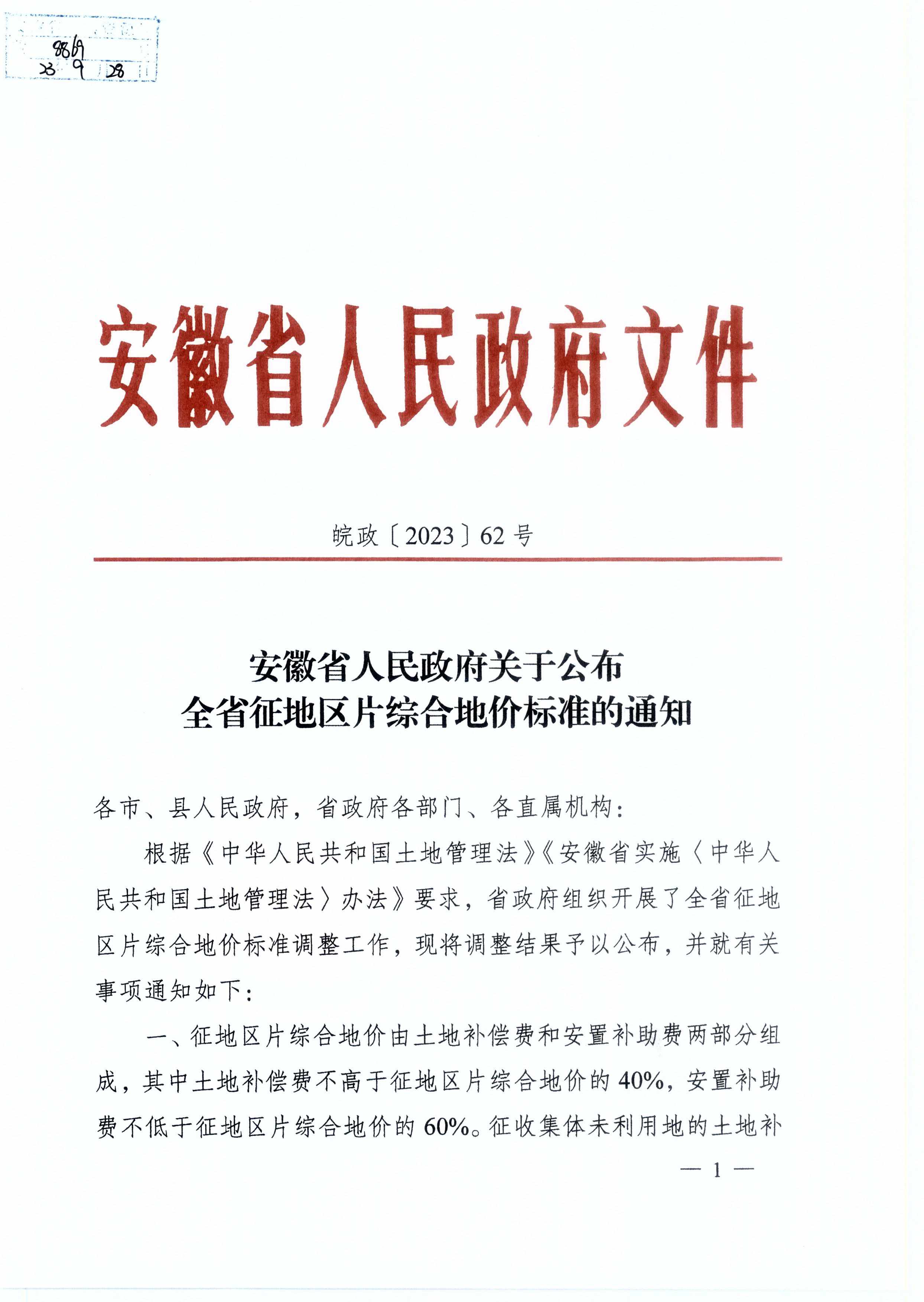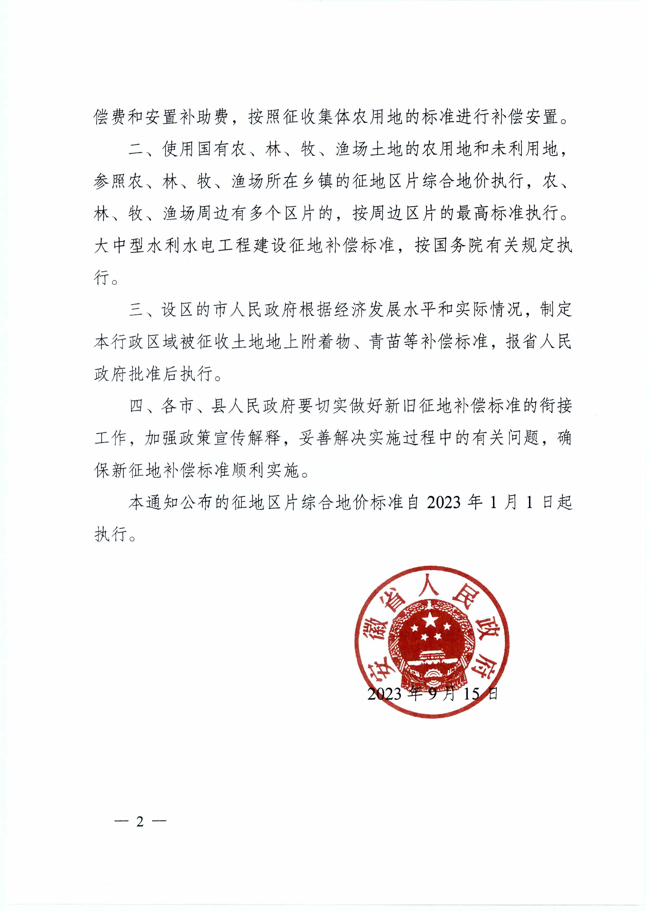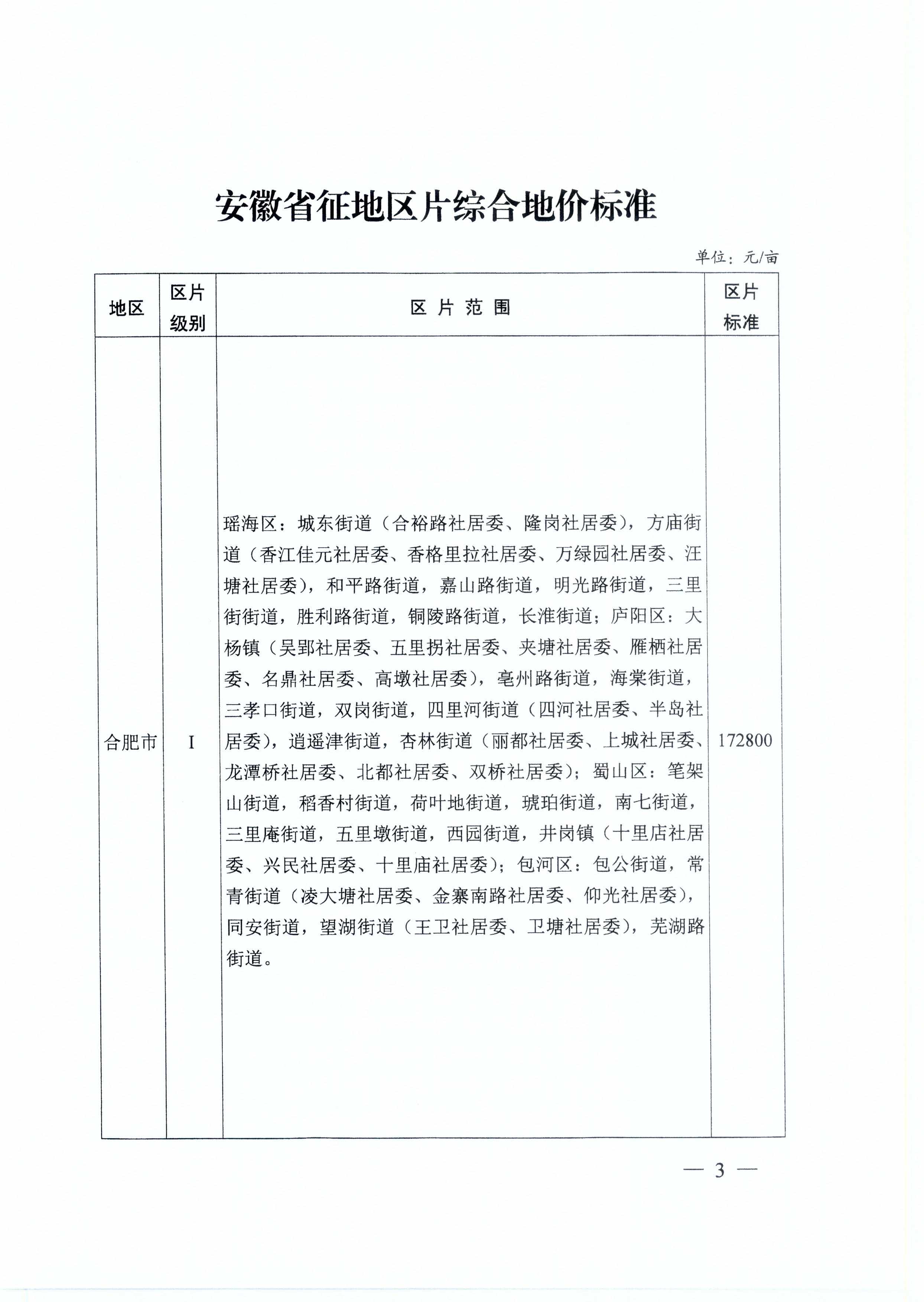 安徽省人民政府关于公布全省征地区片综合地价标准的通知