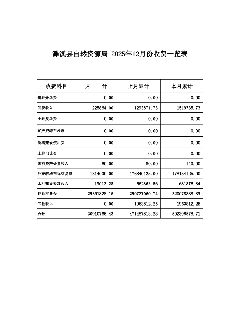 濉溪县自然资源和规划局2025年12月份收费一览表