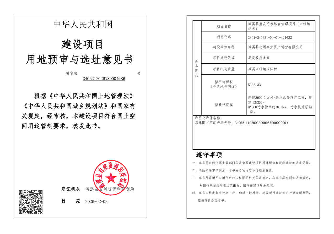 X濉溪县整县污水综合治理项目(四铺镇站点) |
